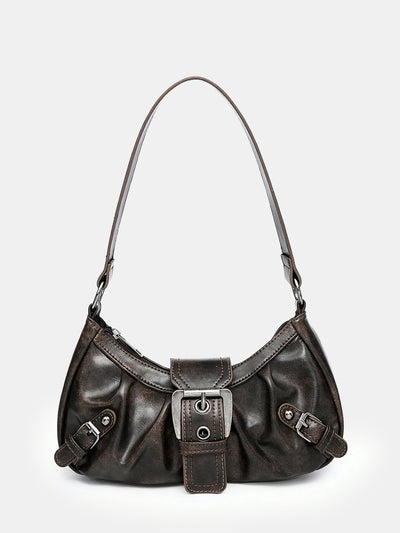 Vintage Faux Leather Buckle-Accent Hobo Bag