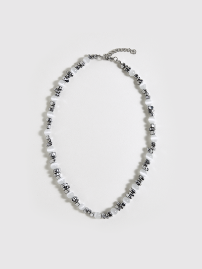 Clear Crystal Beaded Necklace with Green Gemstone Accent