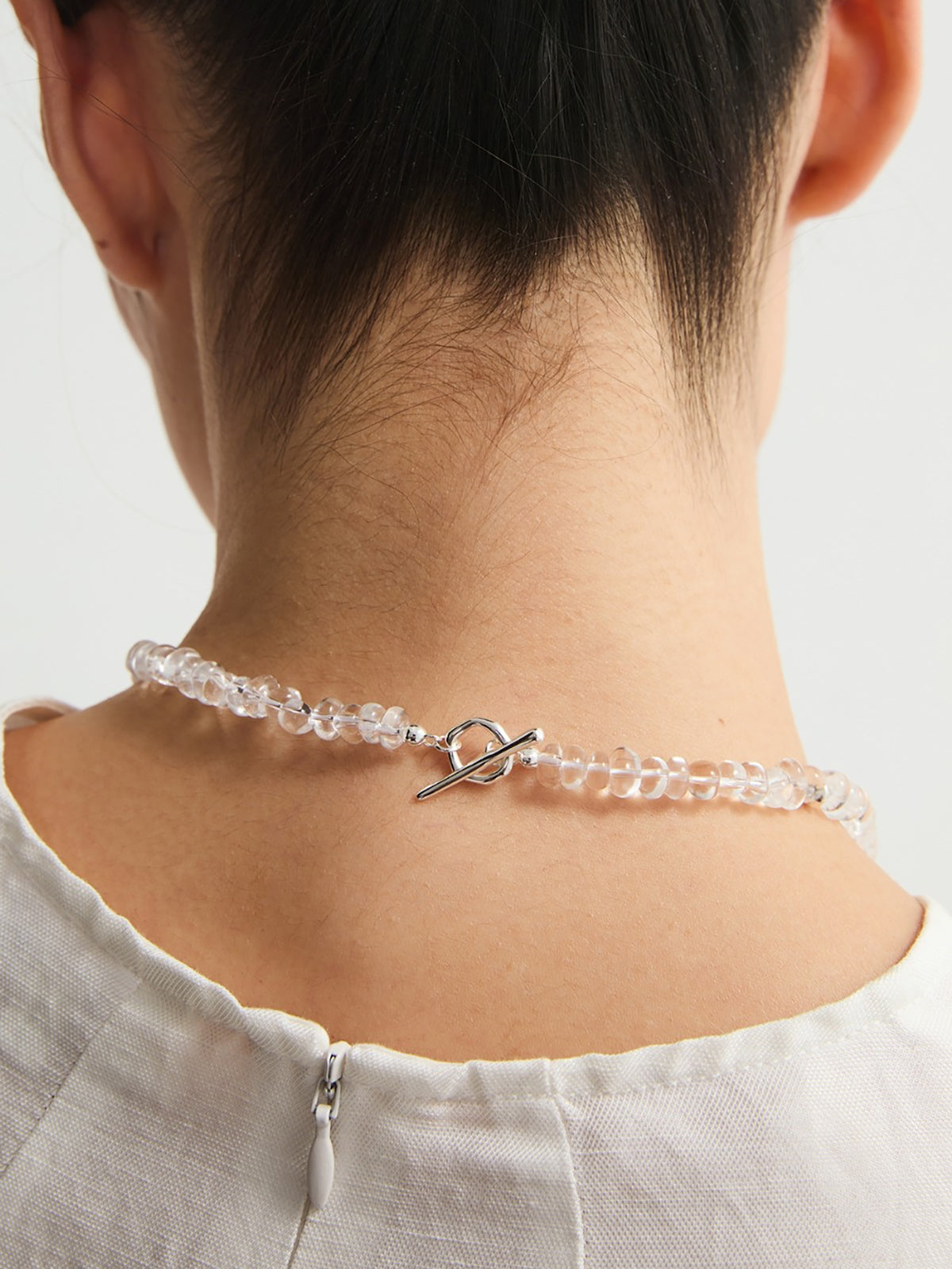 Clear Crystal Beaded Necklace with Green Gemstone Accent