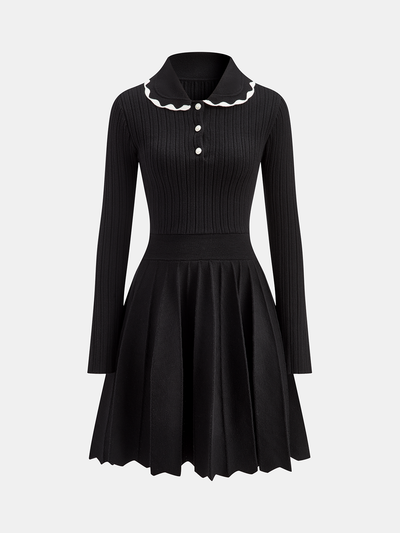 Ribbed Mock Neck Long Sleeve Knit Dress
