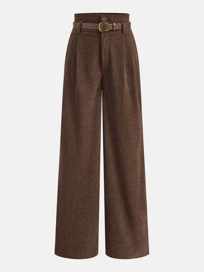 Belted Corduroy High-Waist Pants