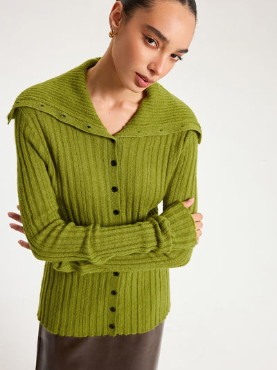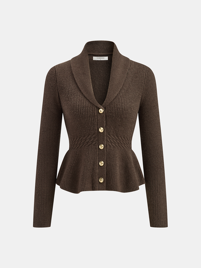 Shawl Collar Wool-Blend Ribbed Cardigan
