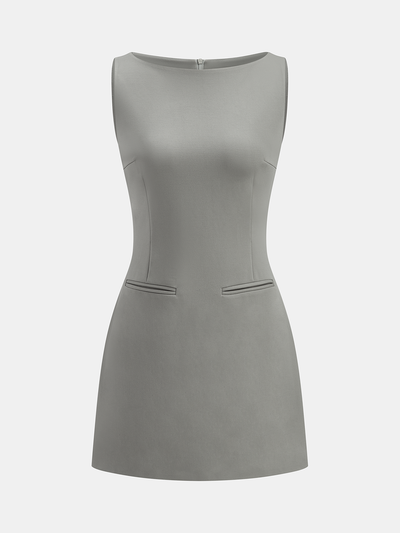 Sleeveless Keyhole-Neck Belted Pleated Mini Dress