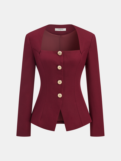 Square Neck Contrast Trim Long Sleeve Knit Shirt