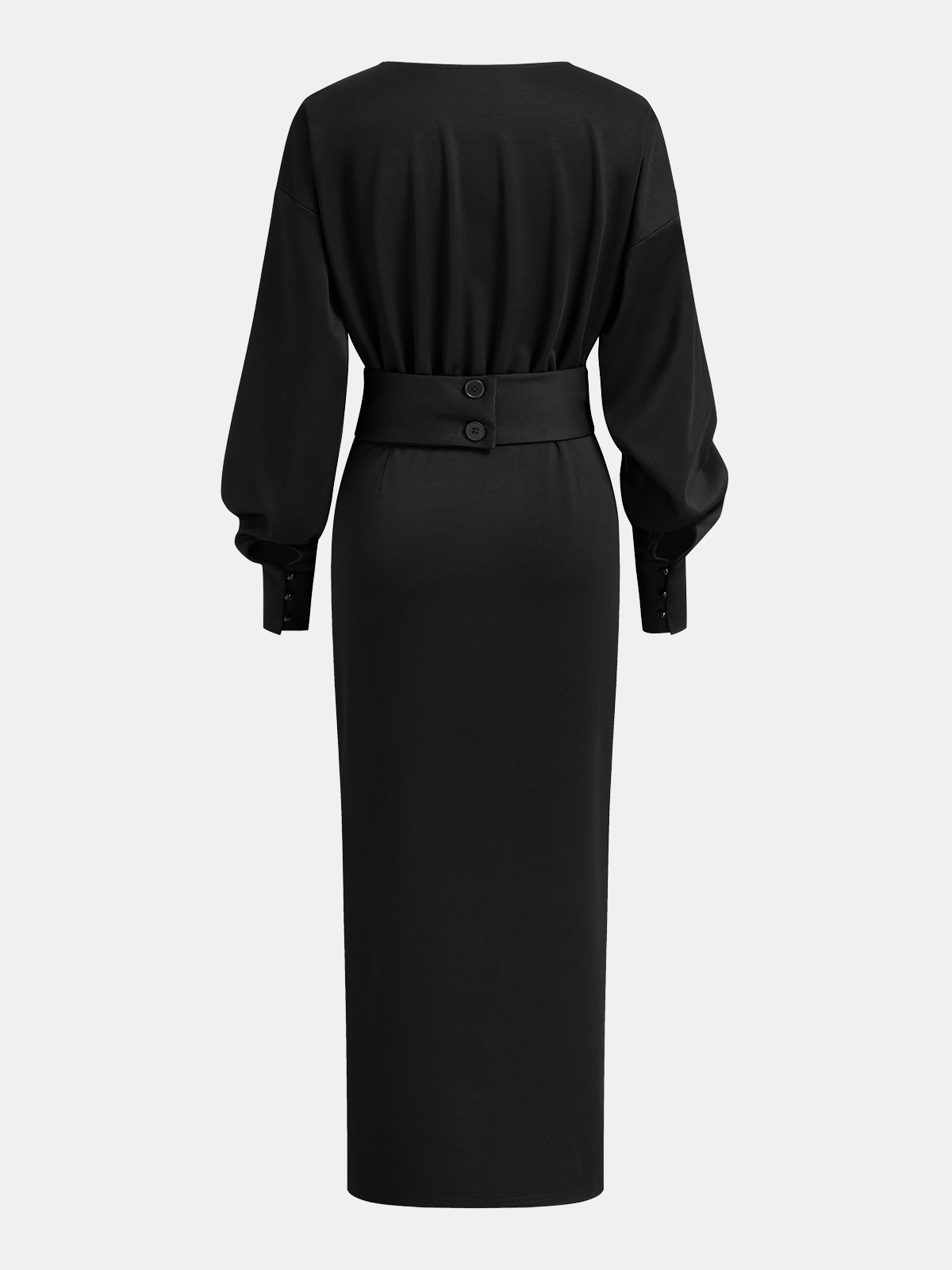 belted,black,casual,clothing,coll:dresses,crew neck,date,dresses,fall,in_six_month,invisible zipper,jersey,long sleeve,medium stretch,midi,minegence,no,not_low_sales,oa250929011,patchwork,regular,regular fit,winter,women