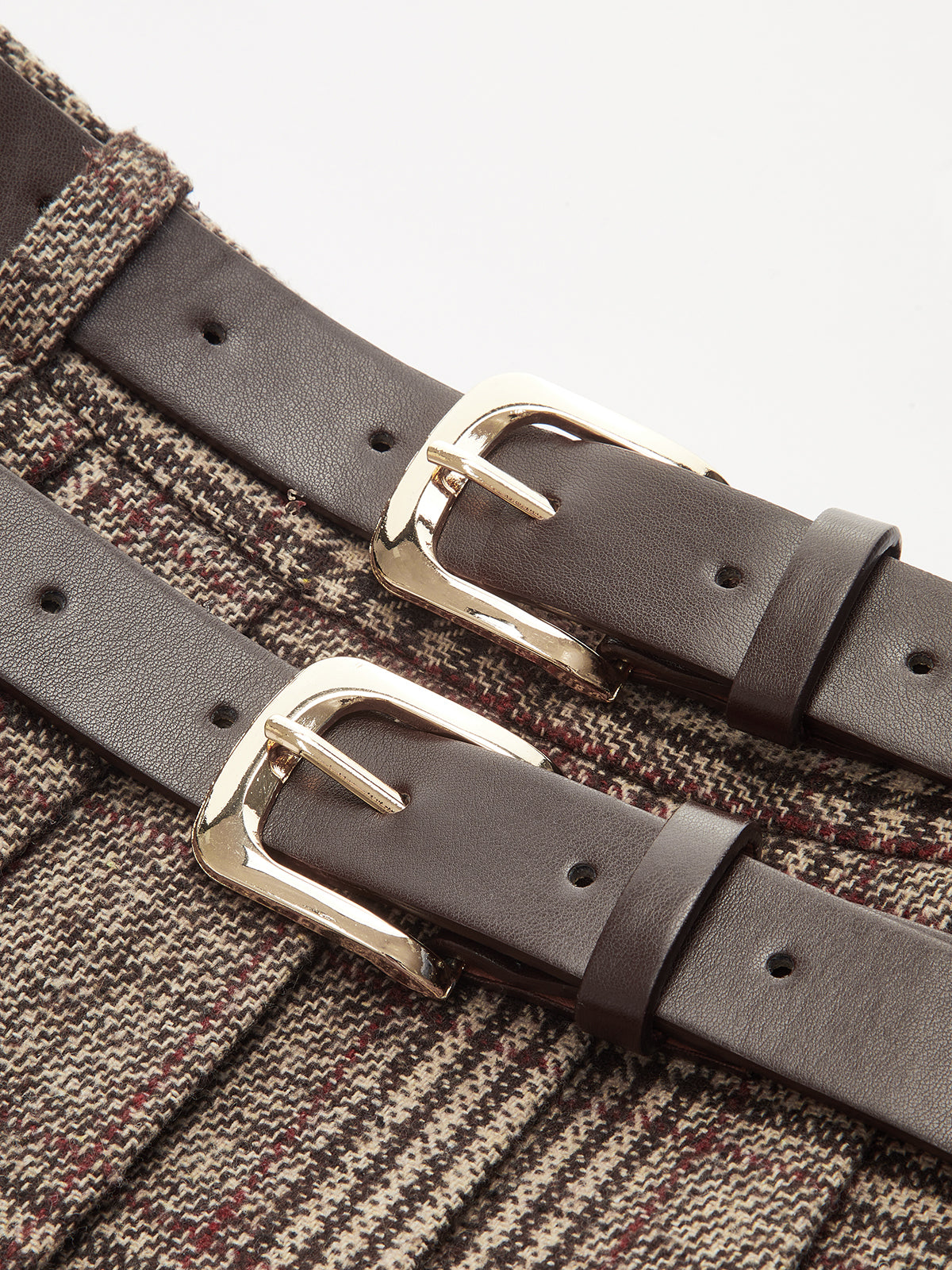 belted,bottoms,brown,clothing,coll:bottoms,coll:plaids_polka,coll:skirts,coll:vintage_fabrics,corpcore,date,fall,feminine,high waist,in_six_month,invisible zipper,no,non-stretch,not_low_sales,oa251016104,plaid,regular,regular fit,short,skirts,tweed,warm,winter,winter hues,women