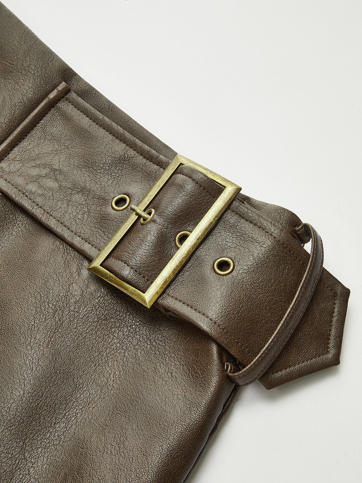 bottoms,casual,clothing,coll:bottoms,coll:old_money,coll:skirts,coll:vintage_fabrics,corpcore,dark brown,date,fall,faux leather,feminine,in_six_month,inner sample,lsy,metal detail,mid waist,no,non-stretch,not_low_sales,oa250806049,regular,short,skirts,slim fit,winter,women