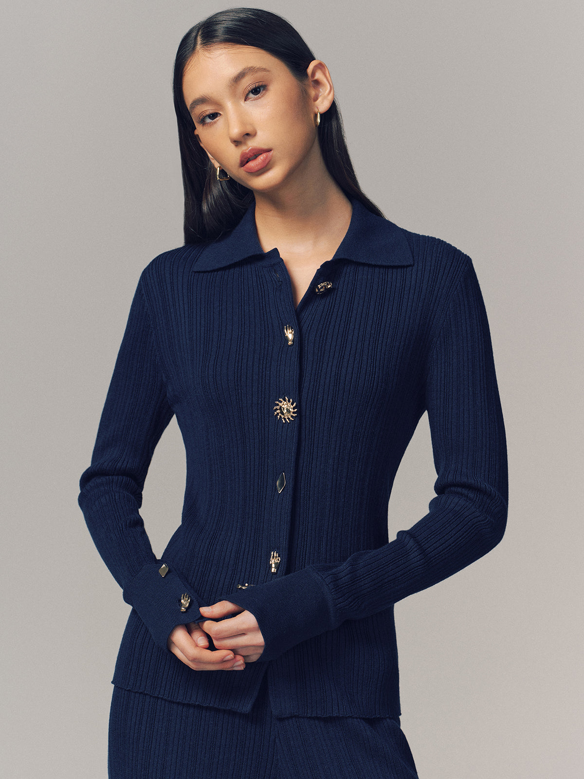 cardigans,casual,cici select,clothing,coll:cardigans,coll:knitwear,coll:matching_sets,coll:sweaters_cardigans,coll:tops,coll:trending,corpcore,fall,feminine,high stretch,in_six_month,knit,matching sets,metal detail,navy,not_low_sales,oa251011043,photo_model,regular,regular fit,spring,sweaters & cardigans,winter,winter hues,women