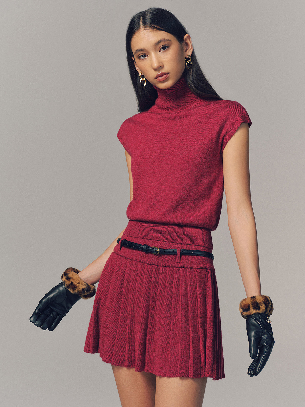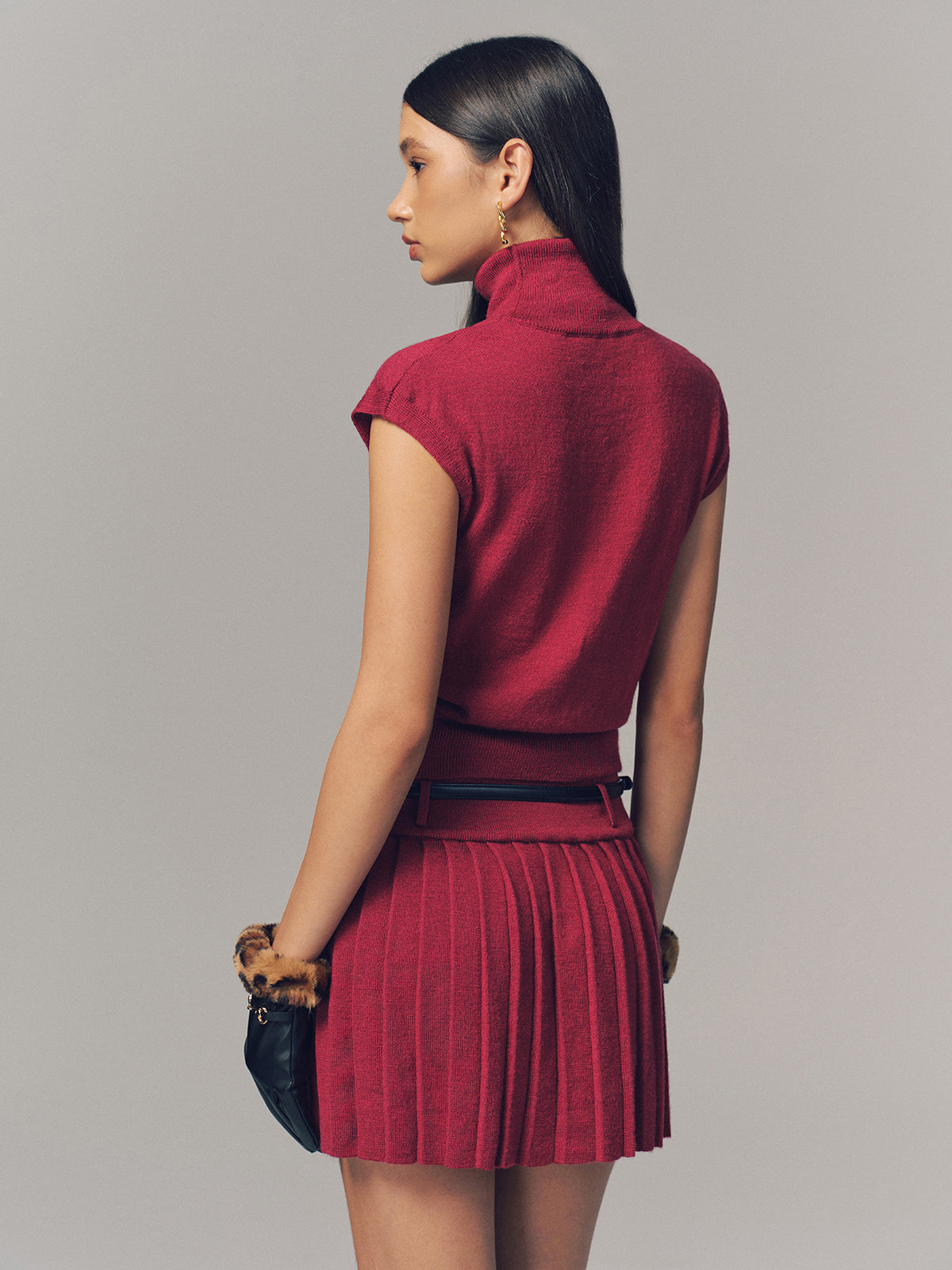 Turtleneck Top & Pleated Mini Skirt Set