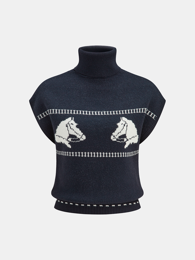 Horse-Pattern Cap Sleeve Turtleneck Sweater Vest