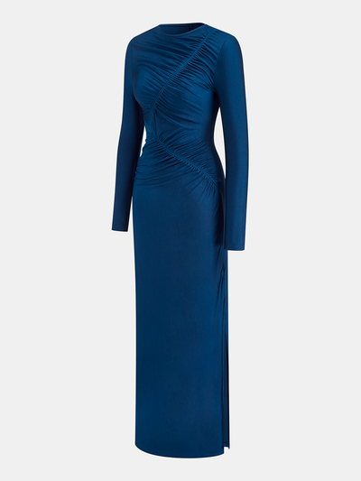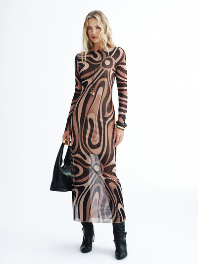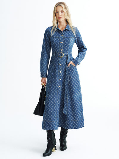 Long Sleeves Foil Spot Print A-Line Maxi Dress
