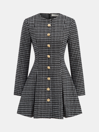 Plaid Metal Button A-Line Mini Dress