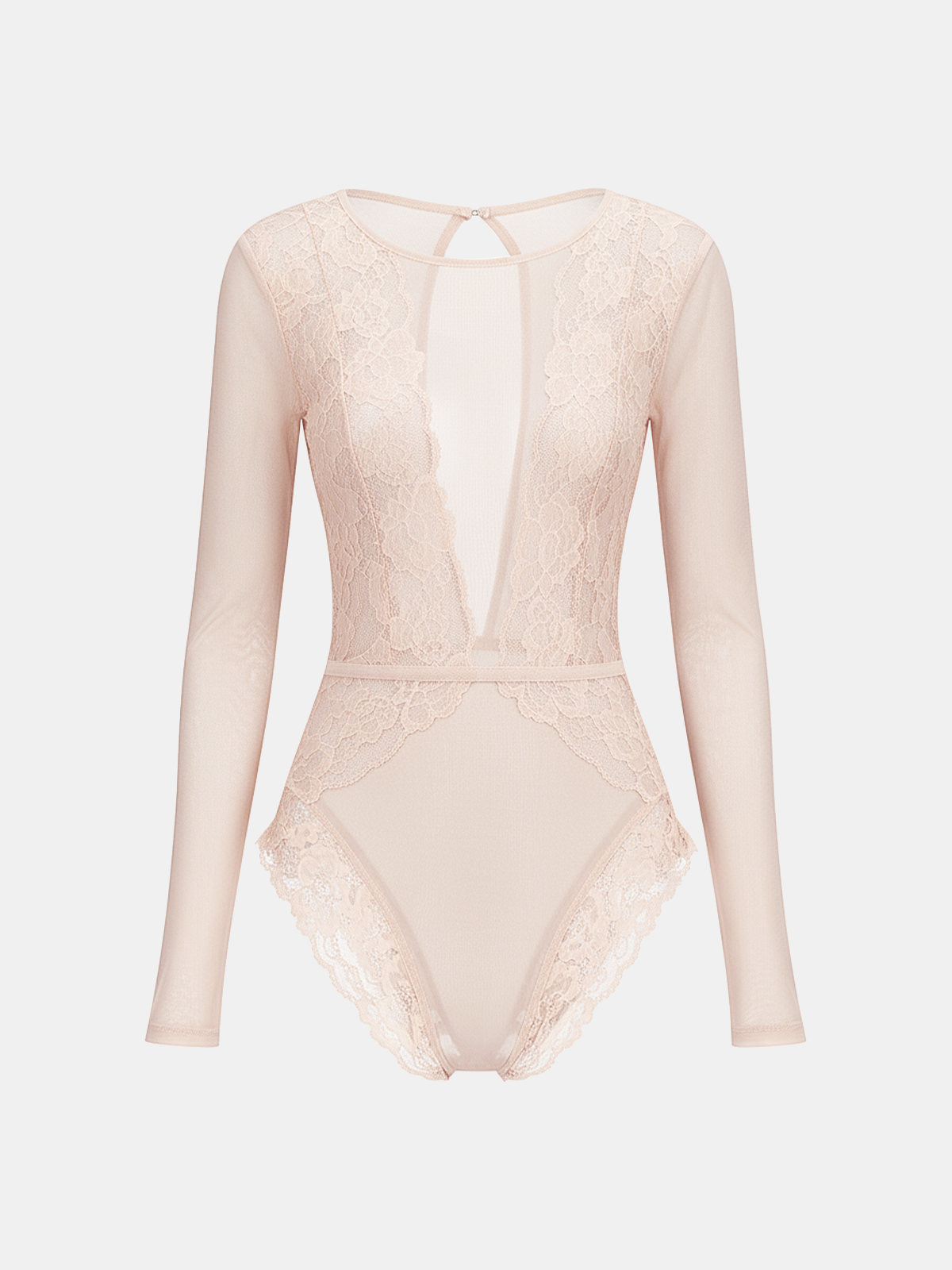 Long Sleeve Sheer Lace Mesh Bodysuit