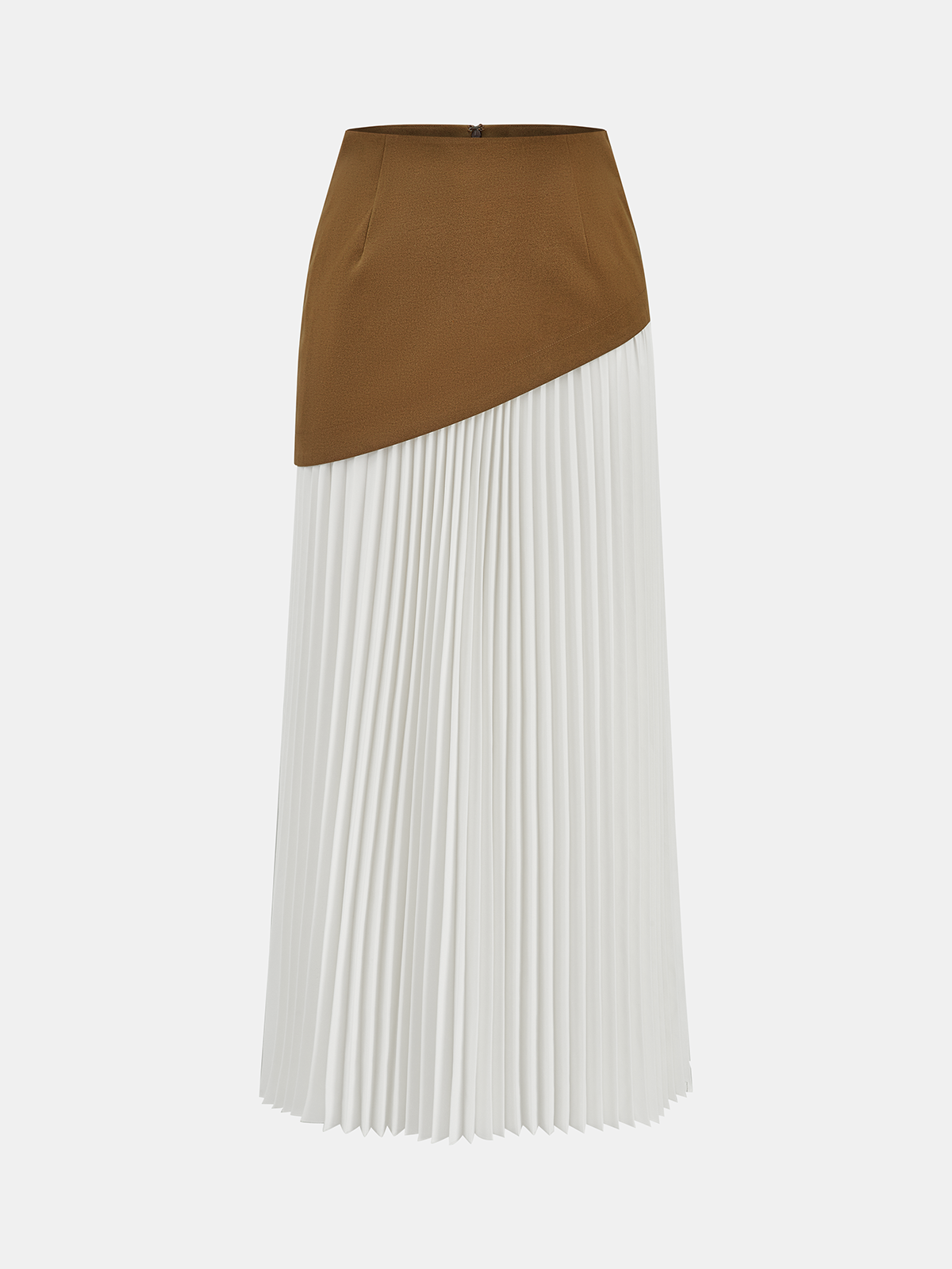 Suede Effect Panel Asymmetric Pleated Maxi Skirt