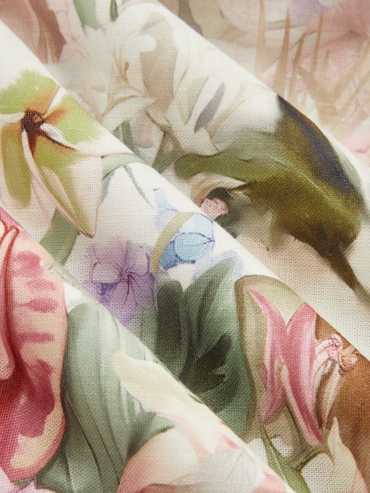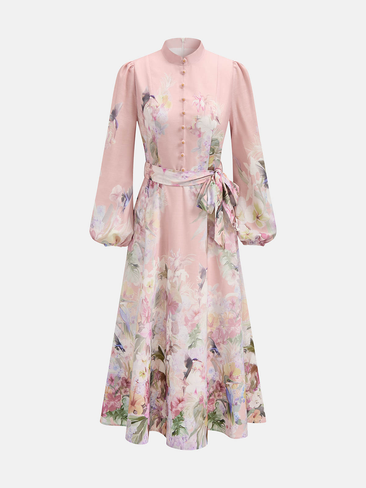 apricot,belted,clothing,coll:dresses,coll:floral_gradient,coll:vacation,coll:weekend_getaway,date,dresses,feminine,floral print,in_six_month,invisible zipper,long sleeve,midi,mock neck,no,non-stretch,not_low_sales,oa251223085,pink,regular,regular fit,vacation,women,woven fabric