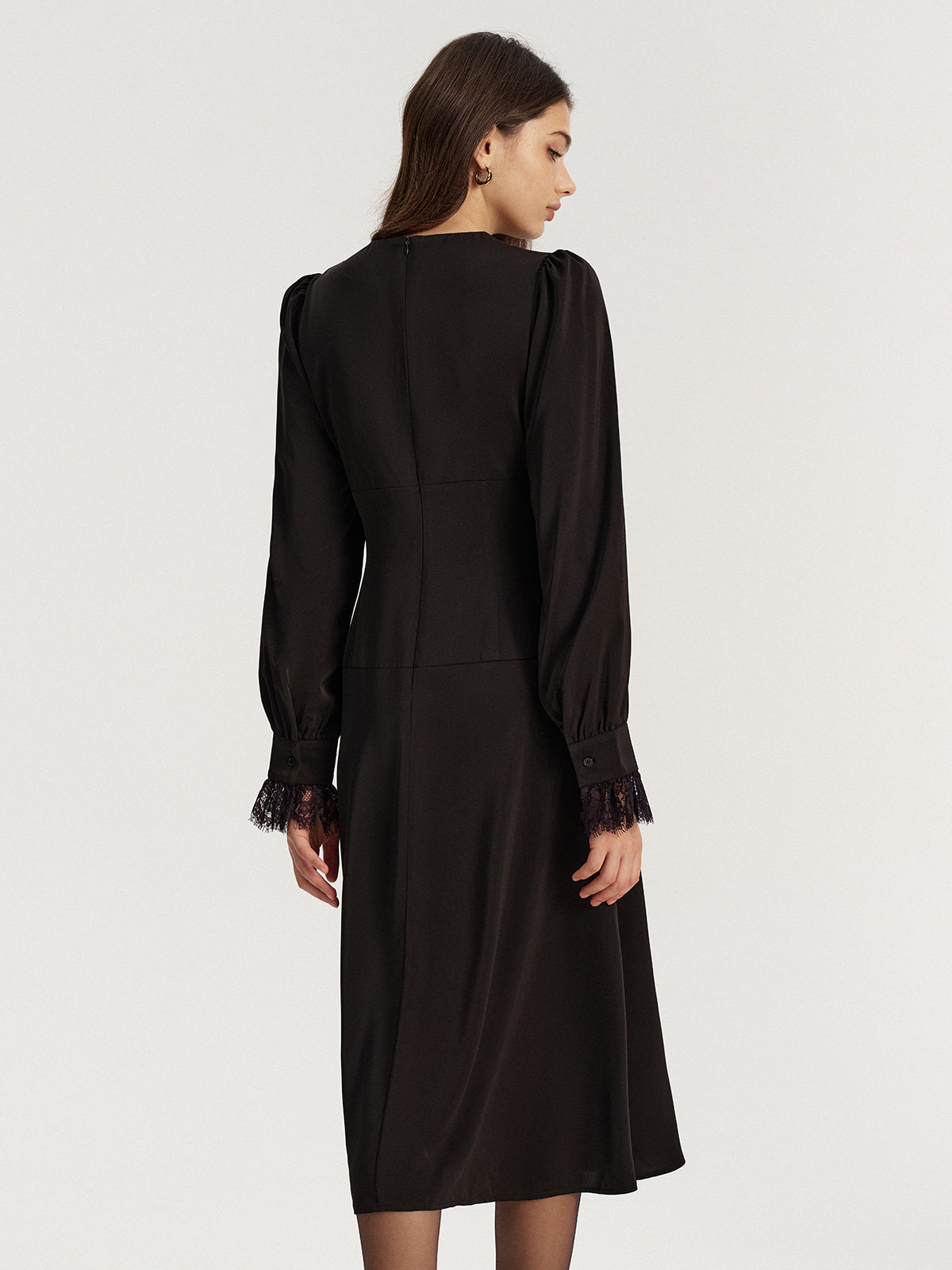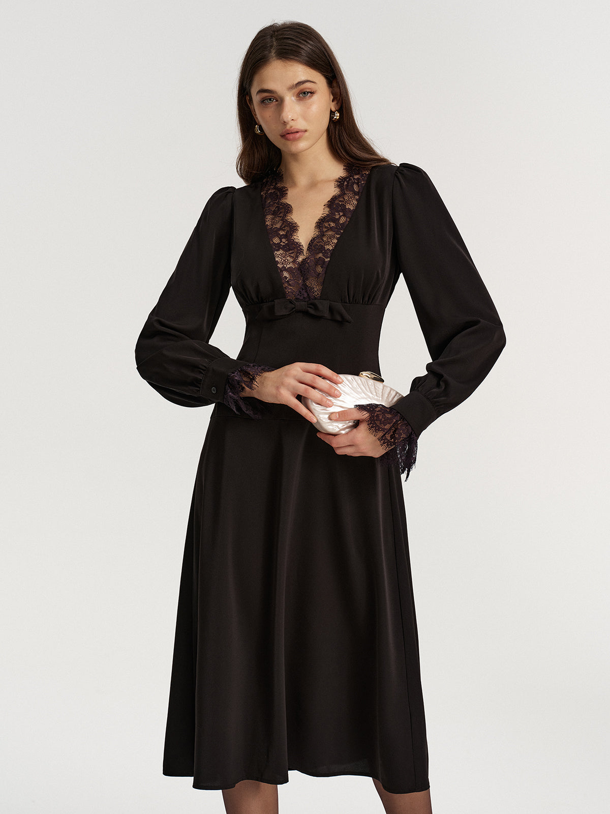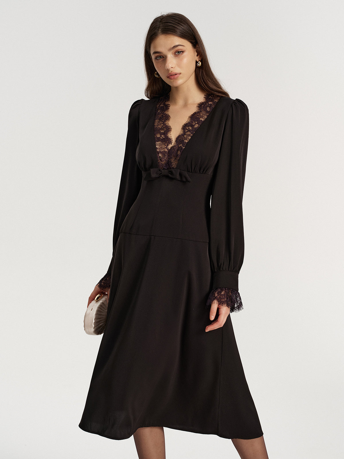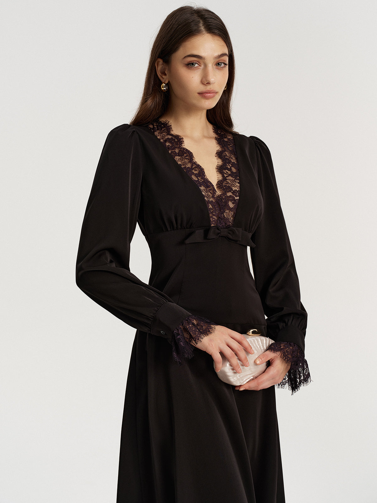 black,cici select,clothing,coll:dresses,coll:night_glam,date,dresses,fall,feminine,in_six_month,inner sample,invisible zipper,lace,long sleeve,midi,no,non-stretch,not_low_sales,oa250911075,party,photo_model,regular,regular fit,satin,spring,thin,v-neck,women