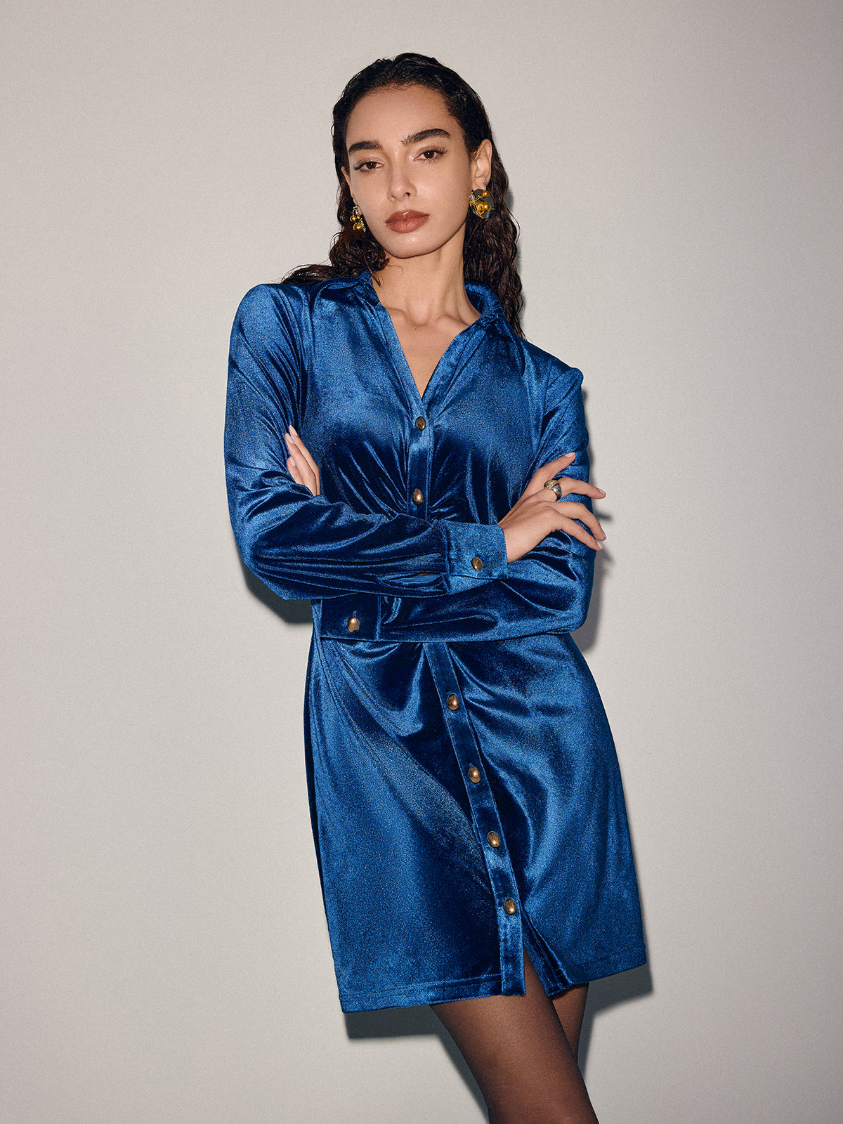 Ruched Velvet Shirt Dress