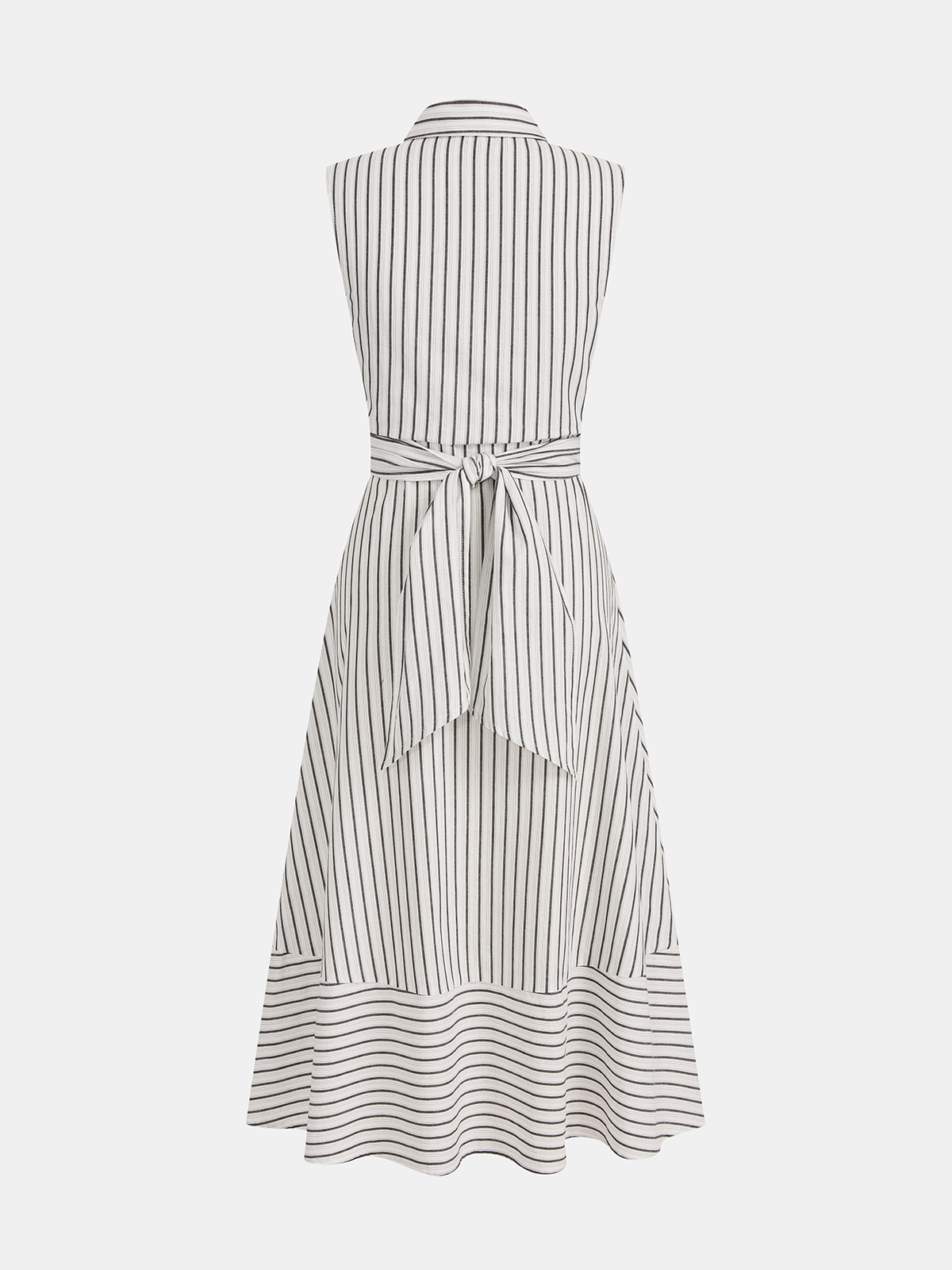 Striped Collared Sleeveless Tie Waist Midi Dress