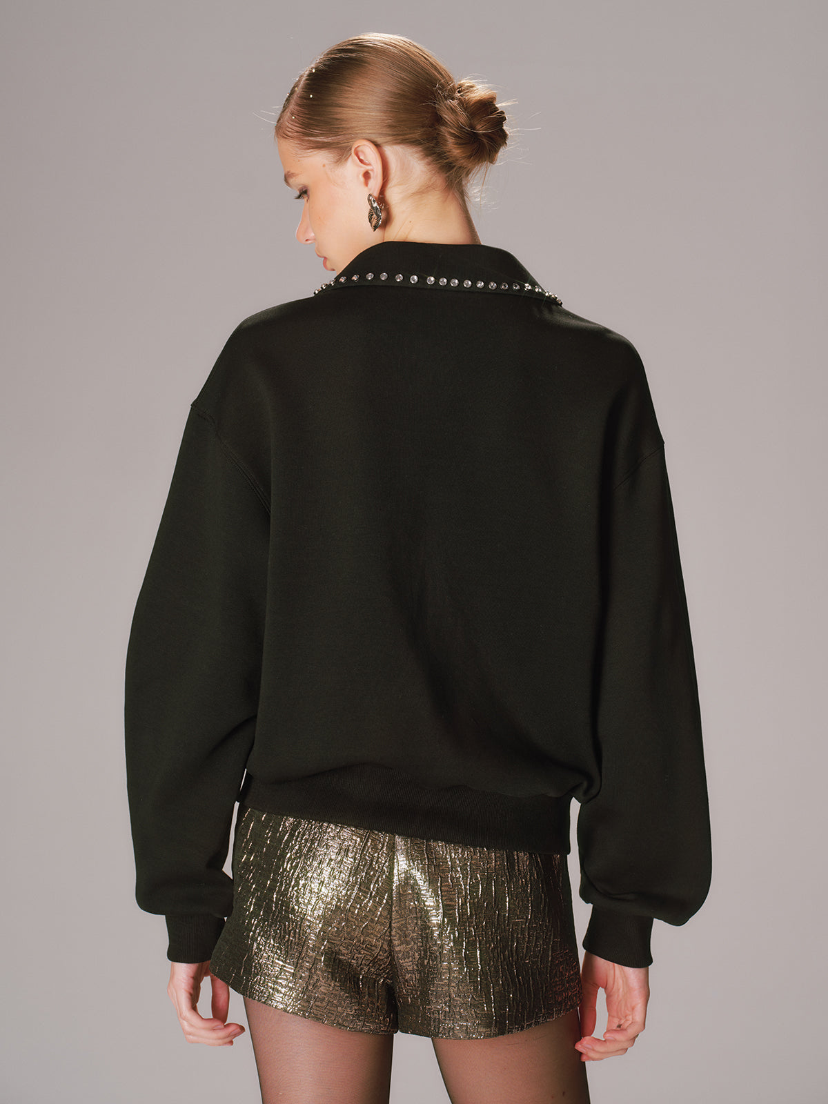 Rhinestone Collar Long-Sleeve Sweatshirt