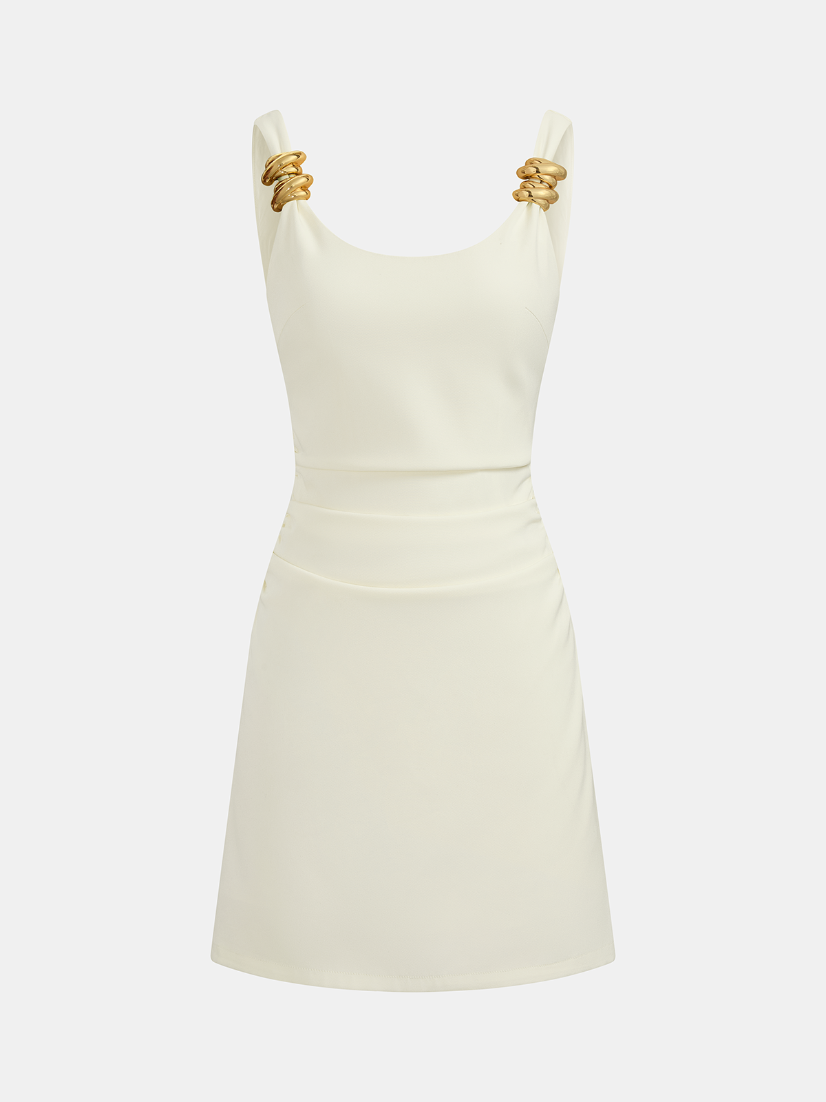 aqua,black,casual,clothing,coll:dresses,coll:linen_cotton,date,dresses,feminine,in_six_month,invisible zipper,linen blend,low cut,metal detail,no,not_low_sales,oa260107013,off-white,photo_ai,regular,ruched,short,sleeveless,slight stretch,slim fit,twisted romance,women
