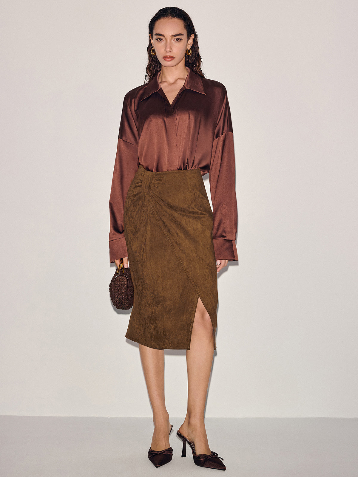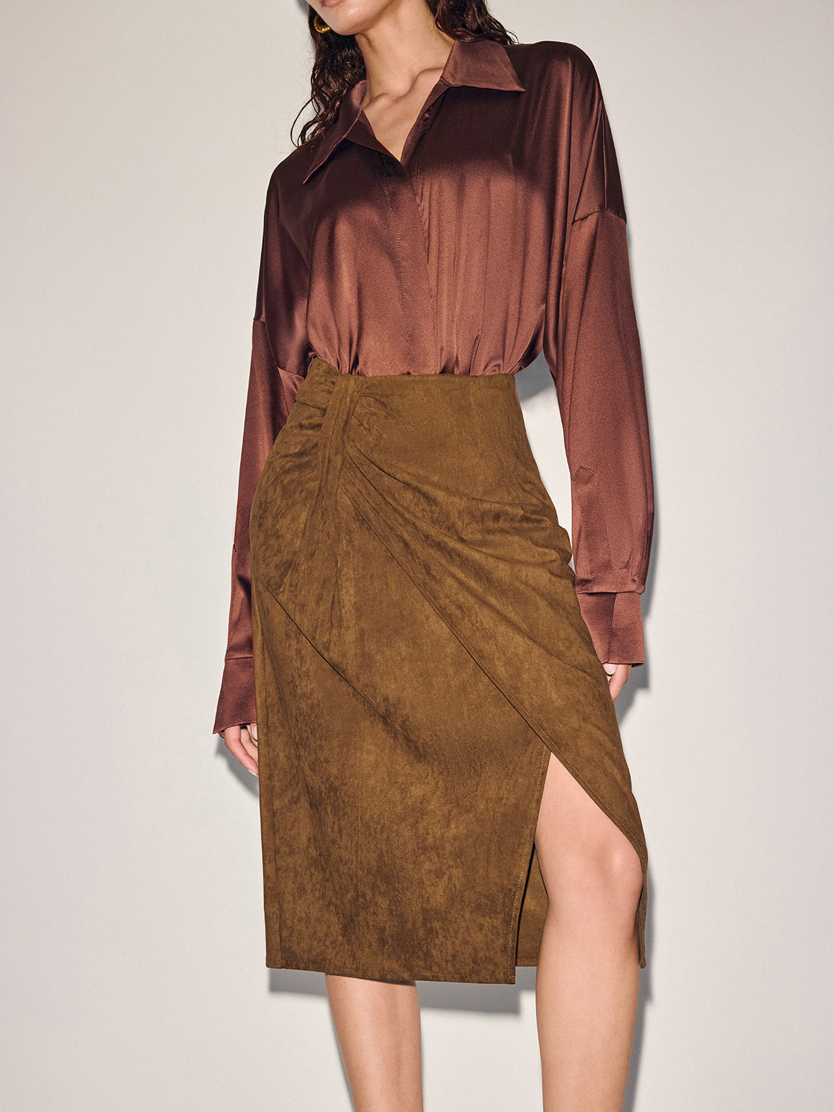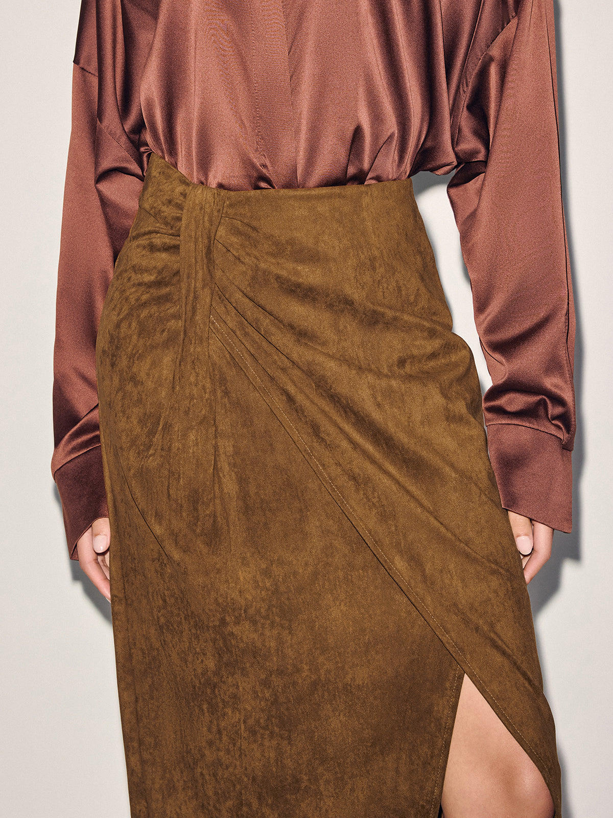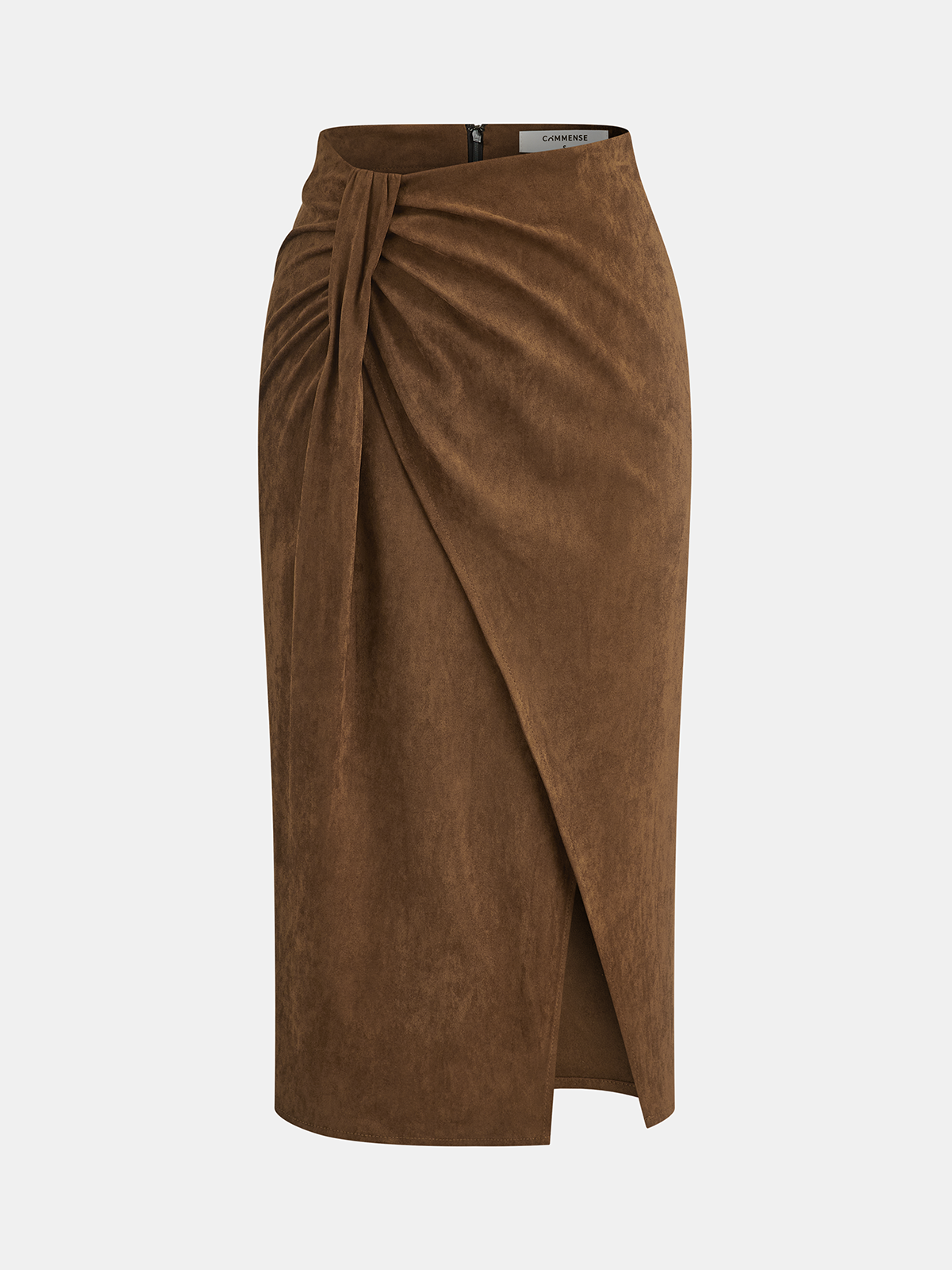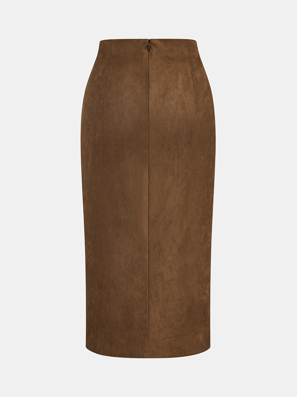 bottoms,brown,casual,clothing,coll:bottoms,coll:skirts,coll:trending,coll:vintage_fabrics,date,fall,in_six_month,invisible zipper,mid waist,midi,minegence,no,non-stretch,not_low_sales,oa251010140,regular,regular fit,skirts,suede effect,winter,winter hues,women