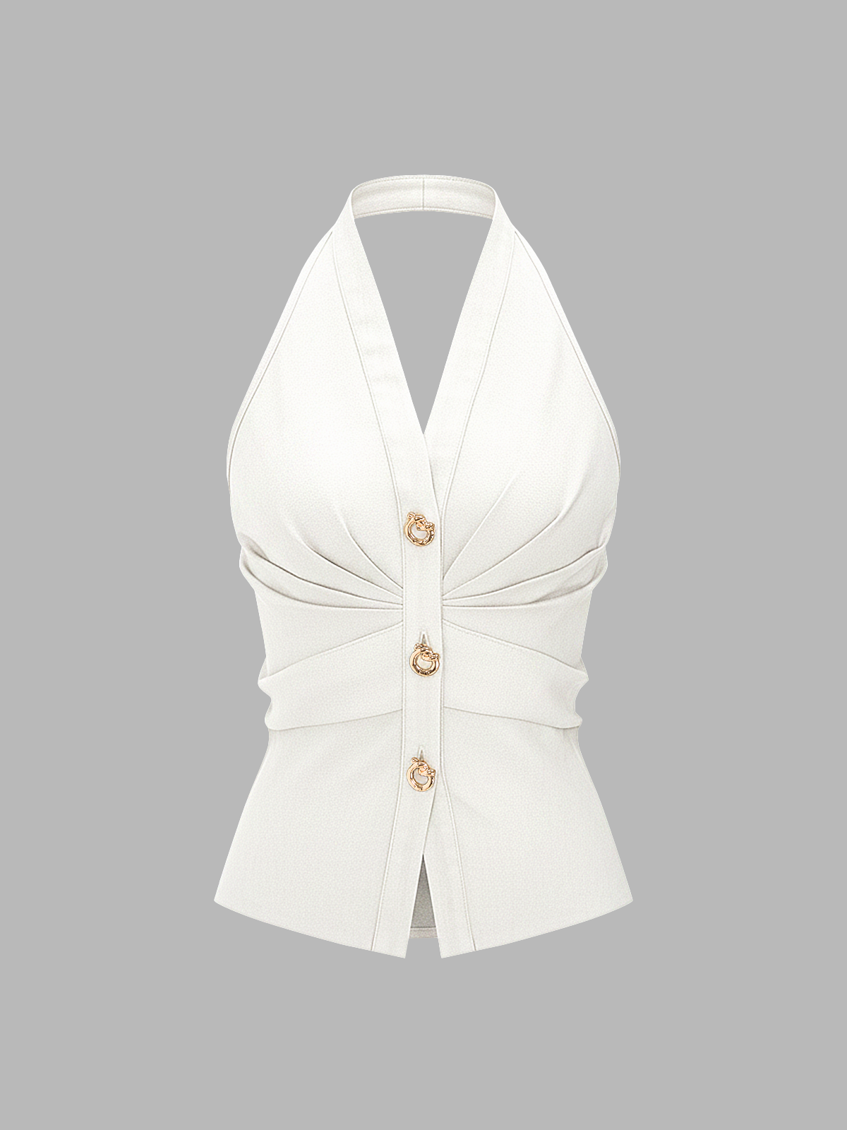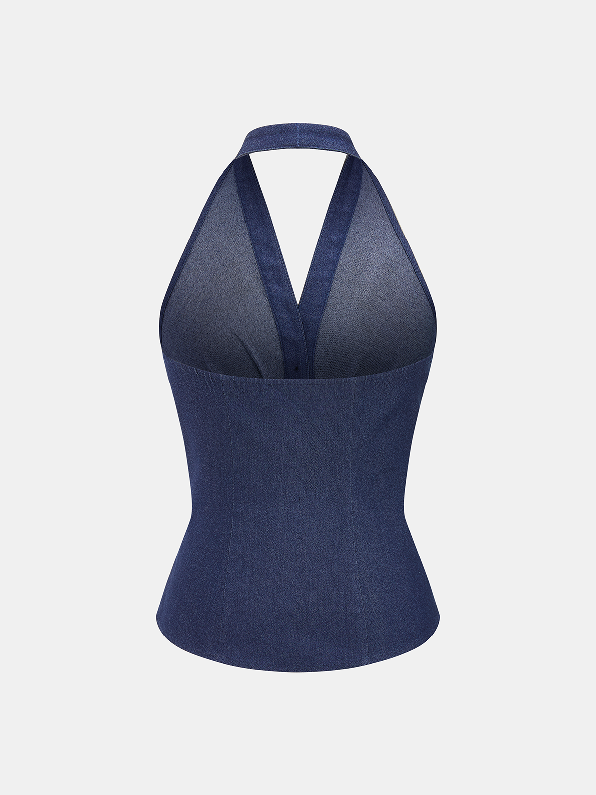 Metal Button Denim Halter Ruched Top