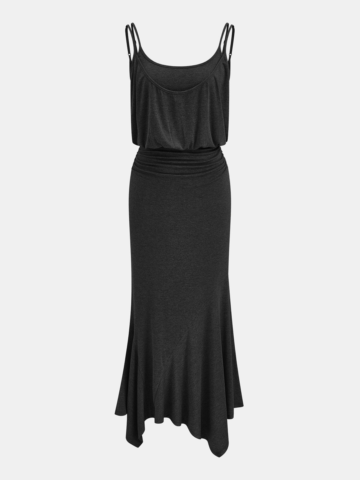 Ruched Asymmetric Cami Maxi Dress