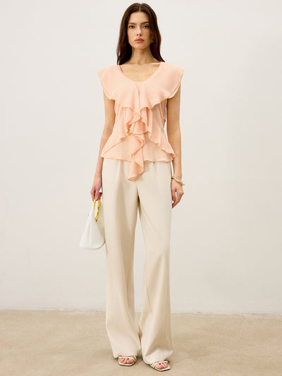 Semi-Sheer Chiffon High-Neck Tiered Cape Top