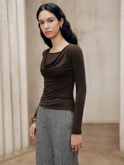 Semi-Sheer Cowl-Neck Sash Back Blouse