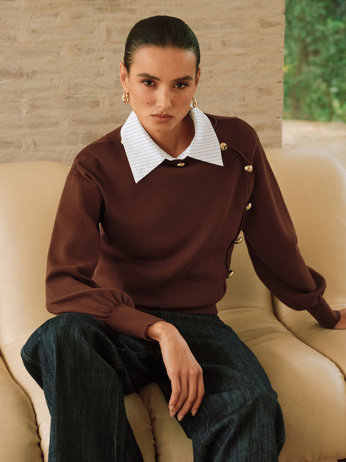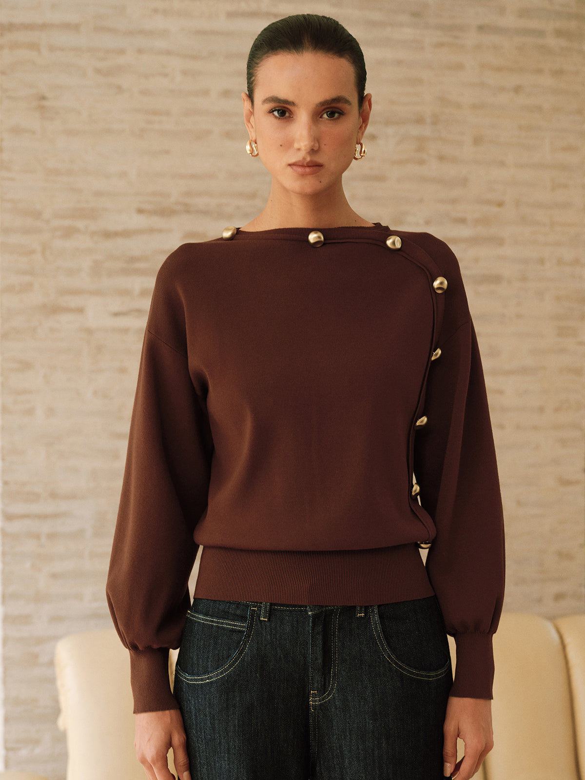 casual,clothing,coll:knitwear,coll:sweater_tops,coll:sweaters_cardigans,coll:tops,coll:trending,corpcore,dark brown,fall,feminine,flashsale2023,in_six_month,inner sample,knit,medium stretch,metal detail,not_low_sales,oa250910039,photo_model,regular,regular fit,sweaters,sweaters & cardigans,warm,winter,winter hues,women