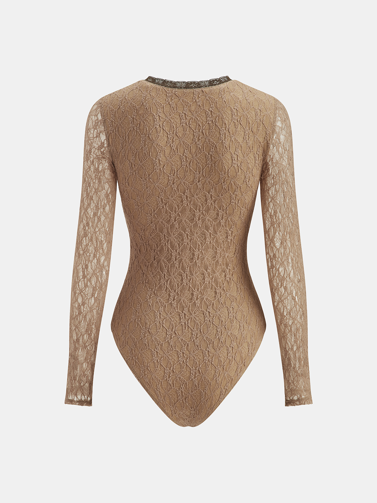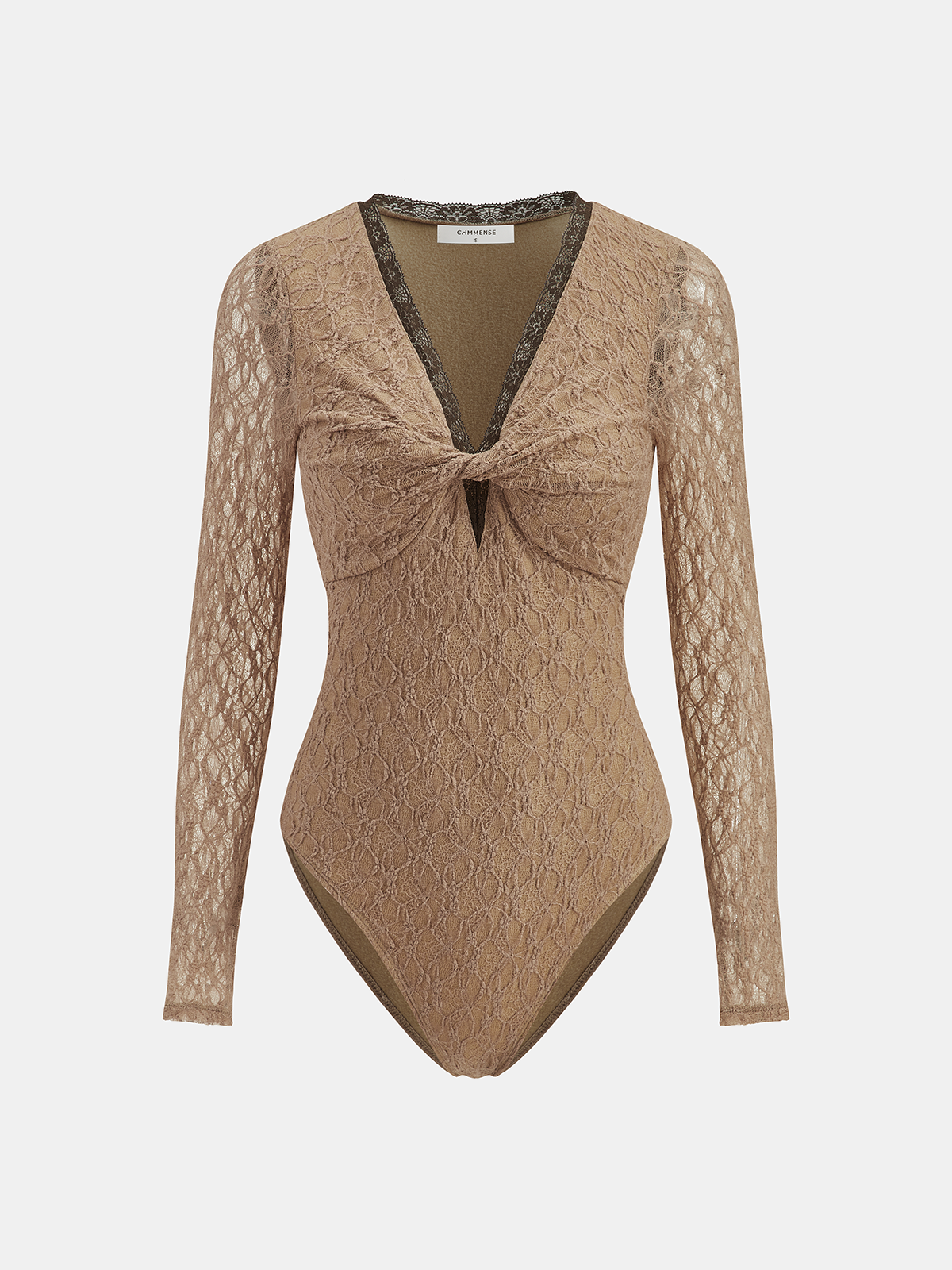 bodysuits,brown,clothing,coll:night_glam,coll:tops,color block,date,in_six_month,lace,lingerie,long sleeve,medium stretch,minegence,not_low_sales,oa251111055,party,regular,semi-sheer,slim fit,tied&knot,tops,v-neck,women,woven fabric