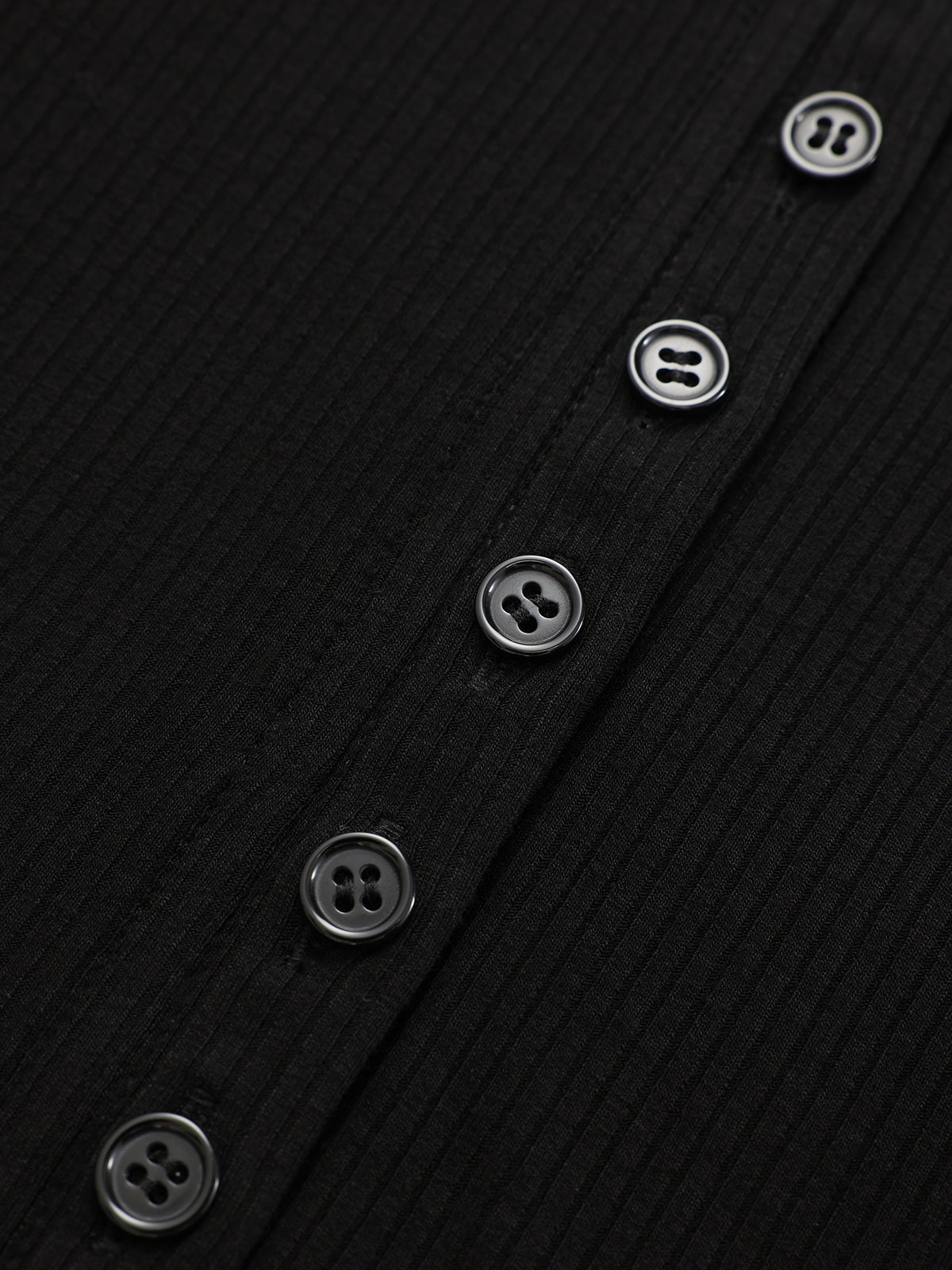 Side Button Asymmetric Lapel Ribbed Knit Top