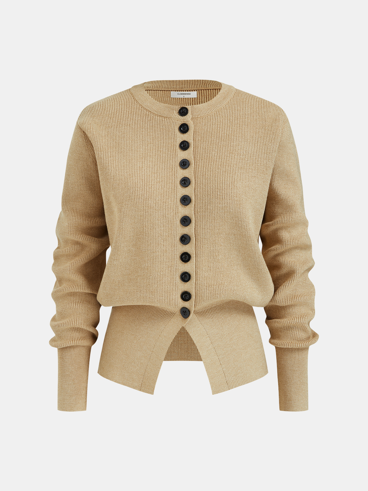 Single-Column Button Knit Cardigan and Skirt Co-ords