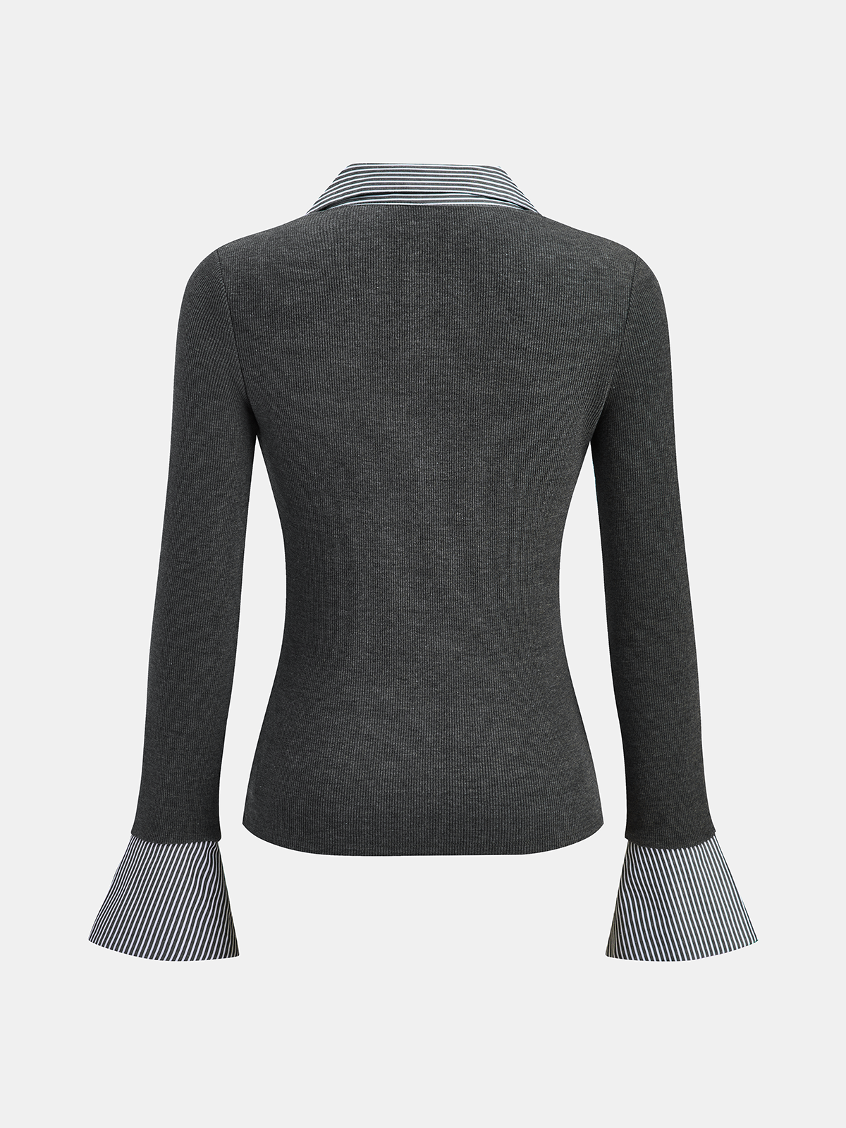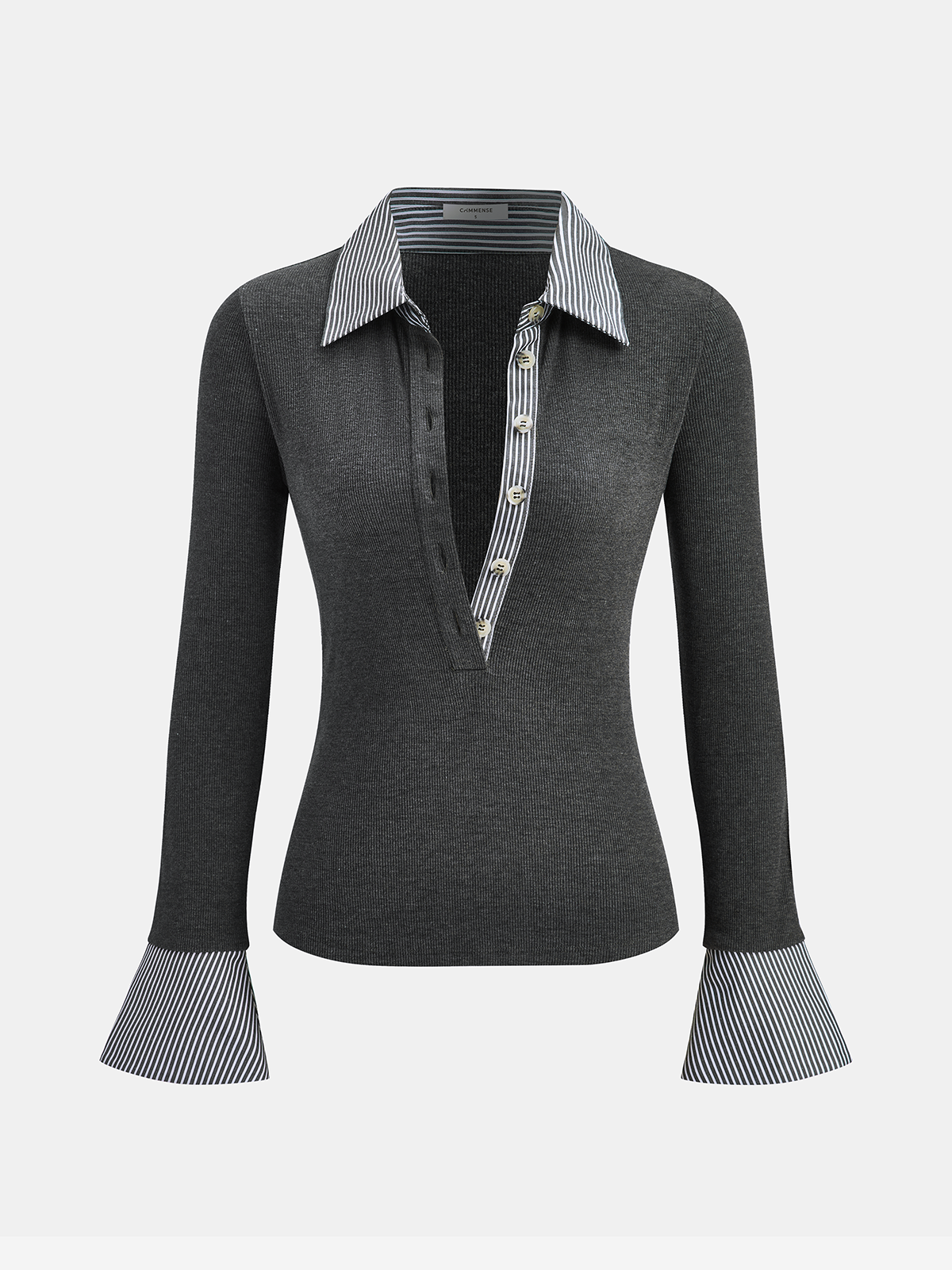 casual,clothing,coll:blouses_shirts,coll:knitwear,coll:tops,collar,corpcore,fall,feminine,grey,high stretch,in_six_month,inner sample,jersey,long sleeve,no,not_low_sales,oa250919057,patchwork,regular,shirts,slim fit,spring,tops,winter,women