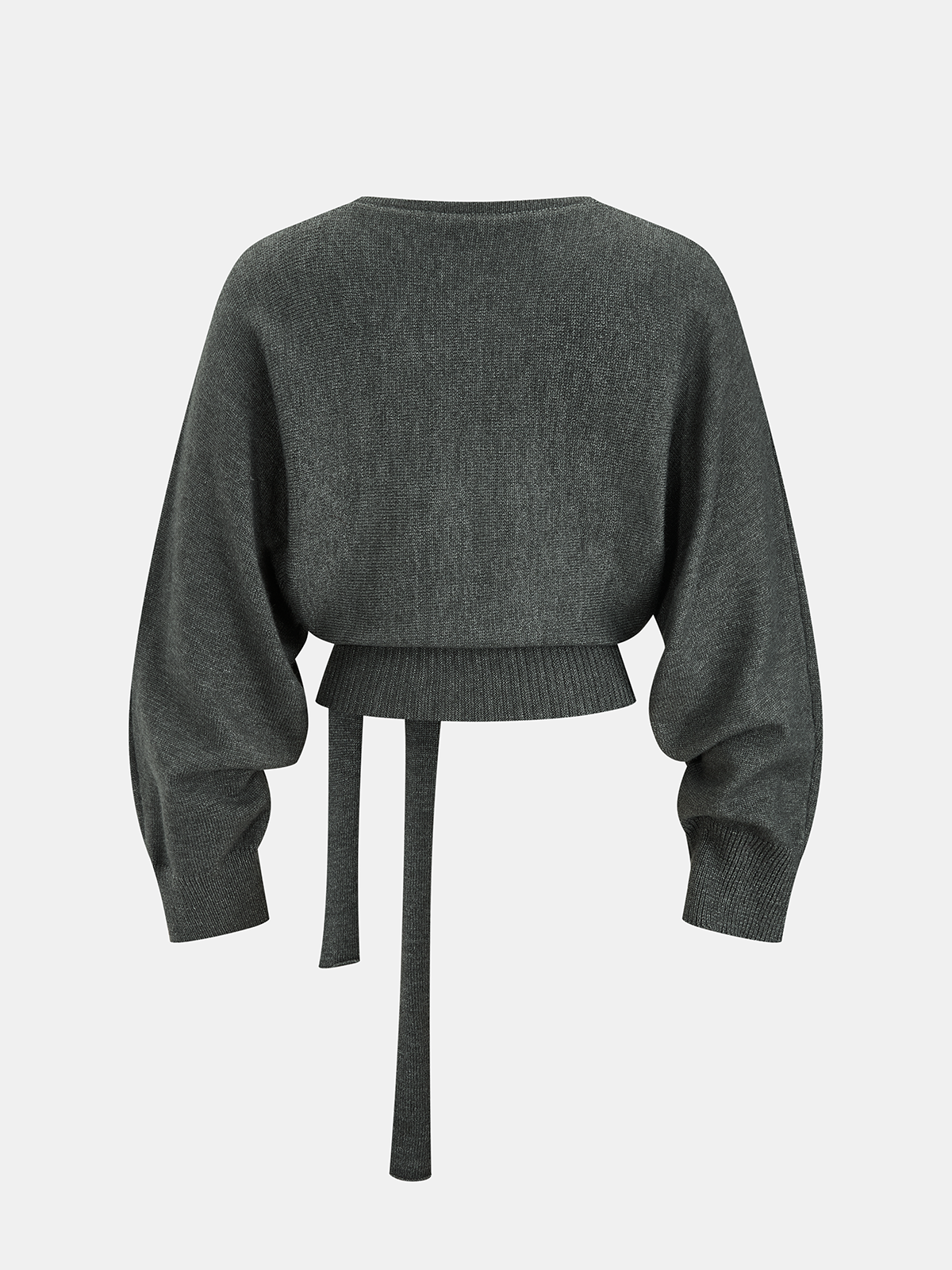 Tie-Waist Batwing-Sleeve Cropped Sweater