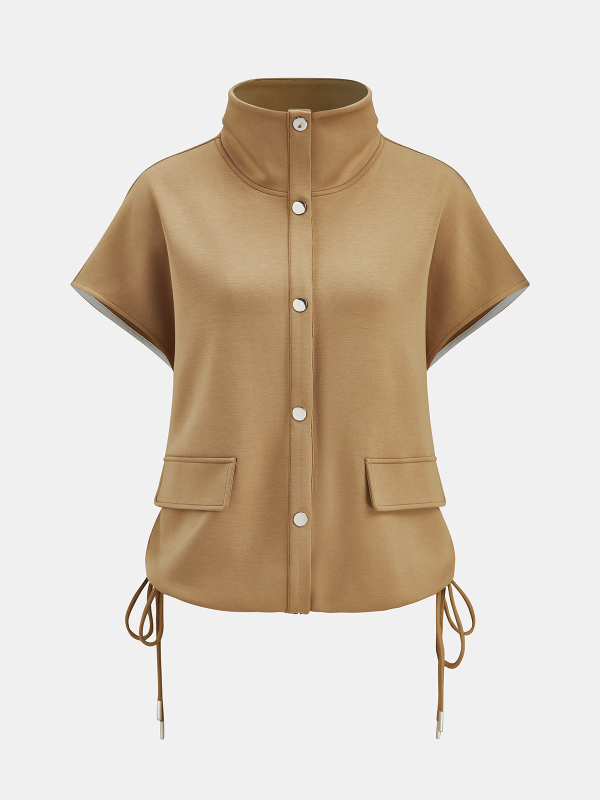 apricot,casual,clothing,coll:linen_cotton,coll:outerwear,coll:tops,coll:trending,coll:vests,cotton blends,feminine,in_six_month,metal detail,non-stretch,not_low_sales,oa251107079,outerwear,regular,shift,short sleeve,vests,winter hues,women