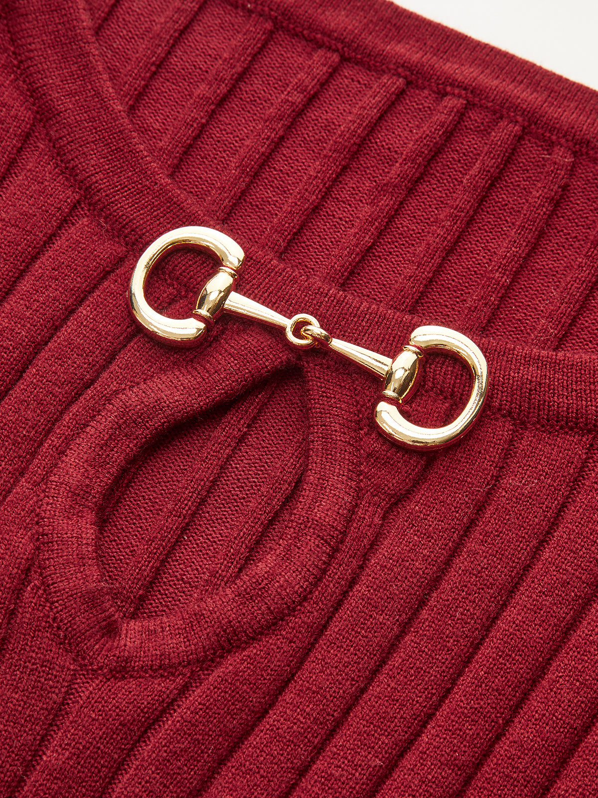Bell Sleeve Mermaid Hem Horsebit Knit Midi Dress
