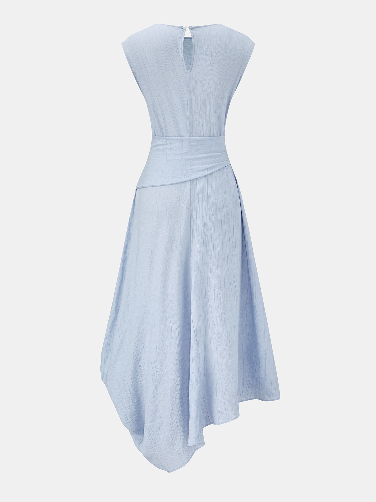 asymmetric,belted,clothing,coll:dresses,coll:linen_cotton,coll:vacation,coll:weekend_getaway,cotton&linen,crew neck,date,dresses,in_six_month,lightblue,maxi,metal detail,minegence,no,non-stretch,not_low_sales,oa260123056,regular fit,sleeveless,summer hues,thin,vacation,women