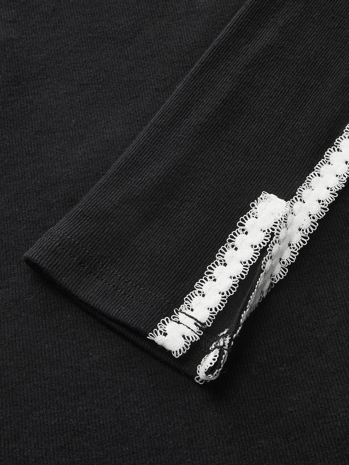 Lace Trim Ribbed Long Sleeve Top