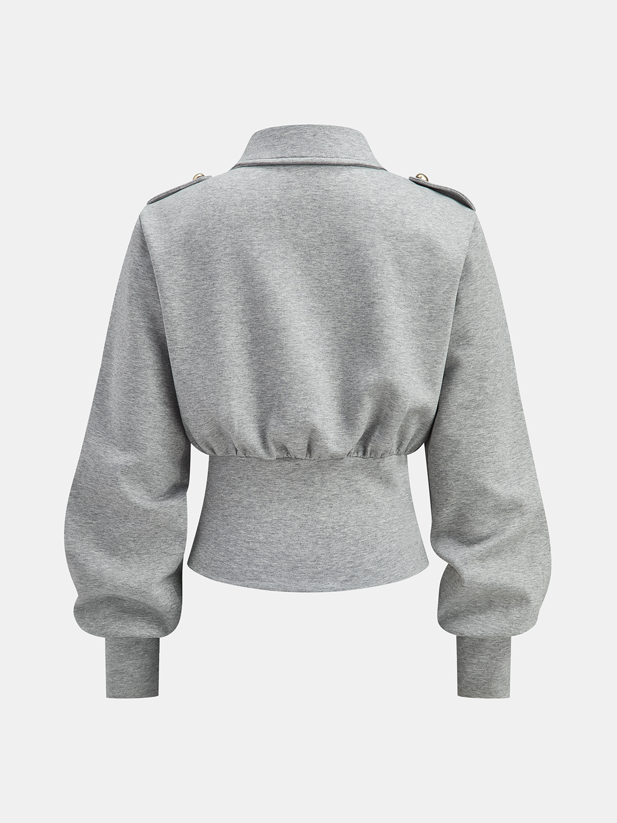 casual,clothing,coll:jackets,coll:matching_sets,coll:night_glam,coll:outerwear,coll:tops,coll:trending,fall,grey,in_six_month,inner sample,invisible zipper,jackets,jersey,long sleeve,matching sets,medium stretch,metal detail,minegence,not_low_sales,oa250929007,outerwear,party,regular,shift,winter,women