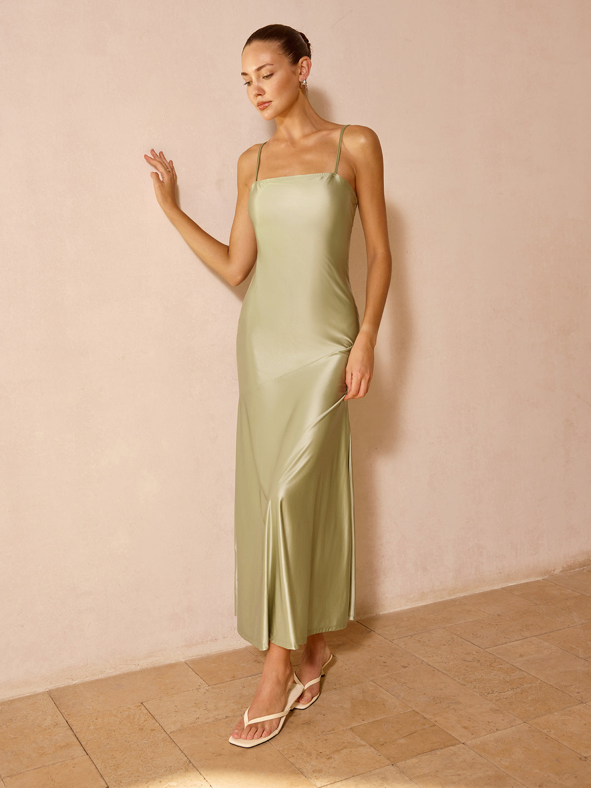 clothing,coll:dresses,coll:sheer_bare-back,coll:vacation,coll:weekend_getaway,date,draped overlay,dresses,feminine,high stretch,in_six_month,lightgreen,low cut,low waist line,maxi,mechanism knitting,no,not_low_sales,oa260305072,photo_ai,sheer,sleeveless,slim fit,summer hues,thin,twisted romance,umbrella hem,vacation,women