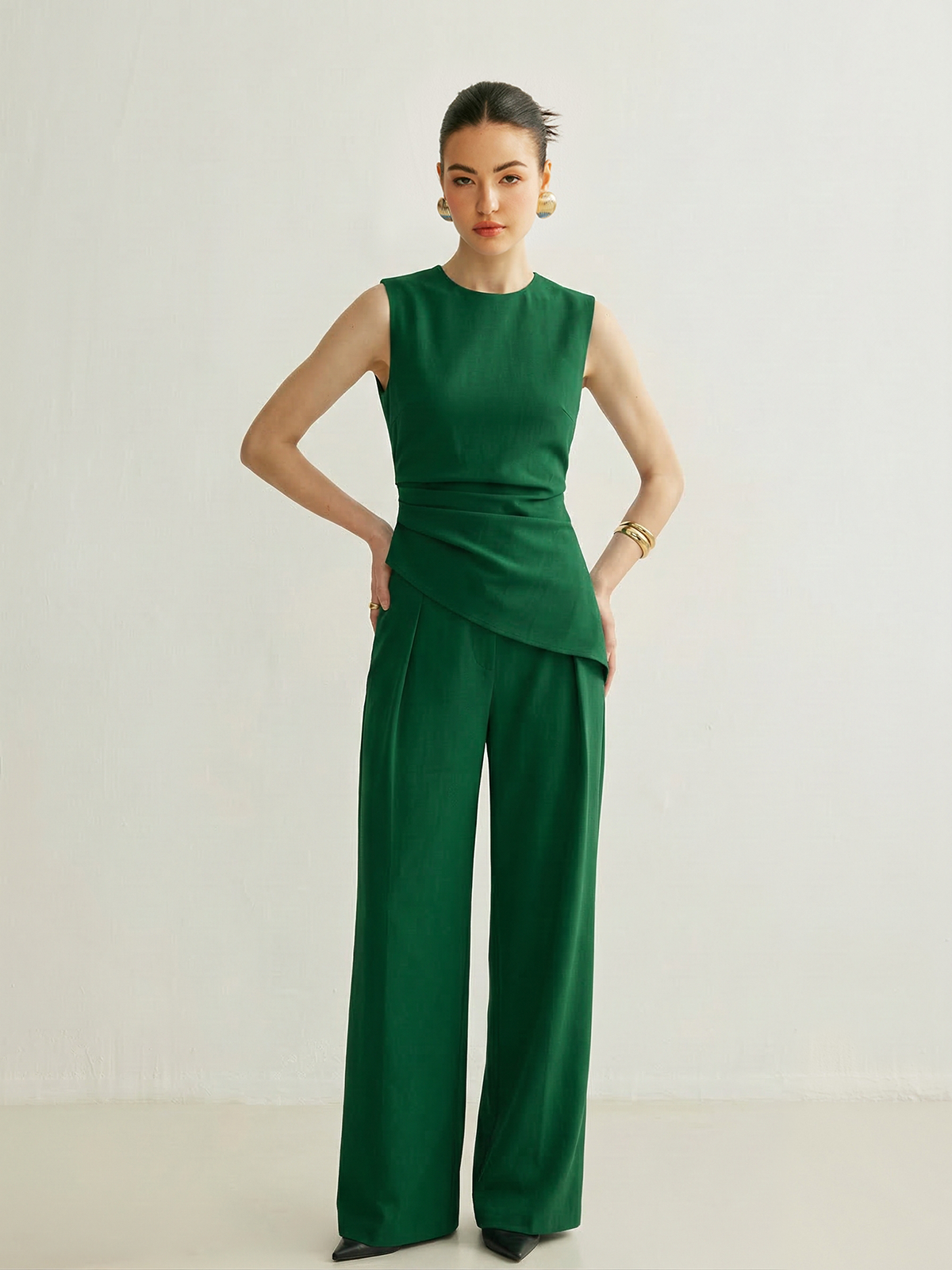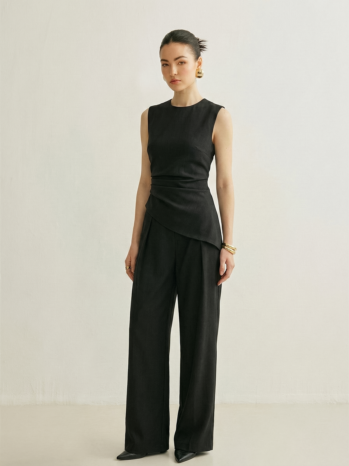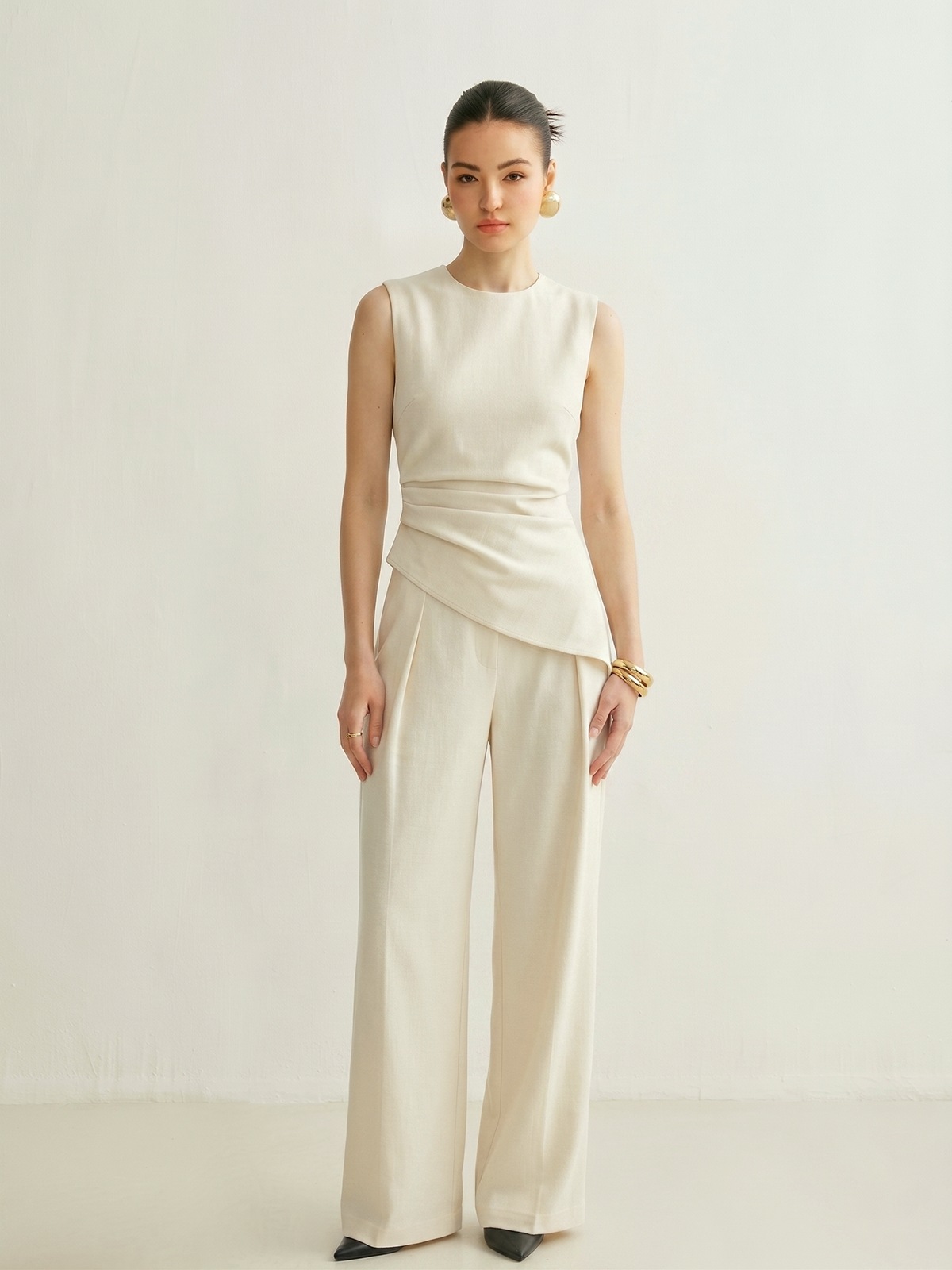 Sleeveless Asymmetric Top & Pleated Pants Set