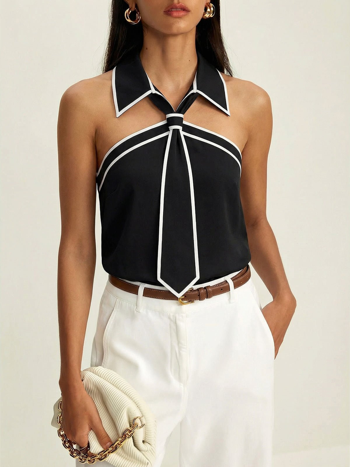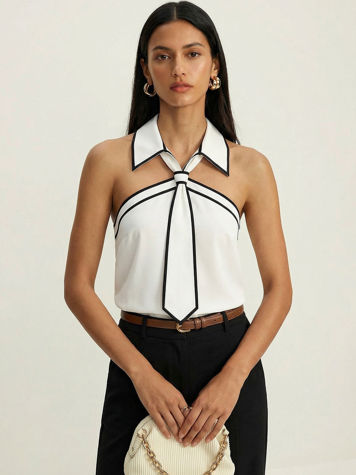 blackandwhite,blouses,clothing,coll:blouses_shirts,coll:tops,collar,contrast piping / trim,corpcore,date,in_six_month,invisible zipper,minegence,no,non-stretch,not_low_sales,oa260113016,photo_ai,regular,regular fit,sleeveless,tied&knot,tops,white,women,woven fabric