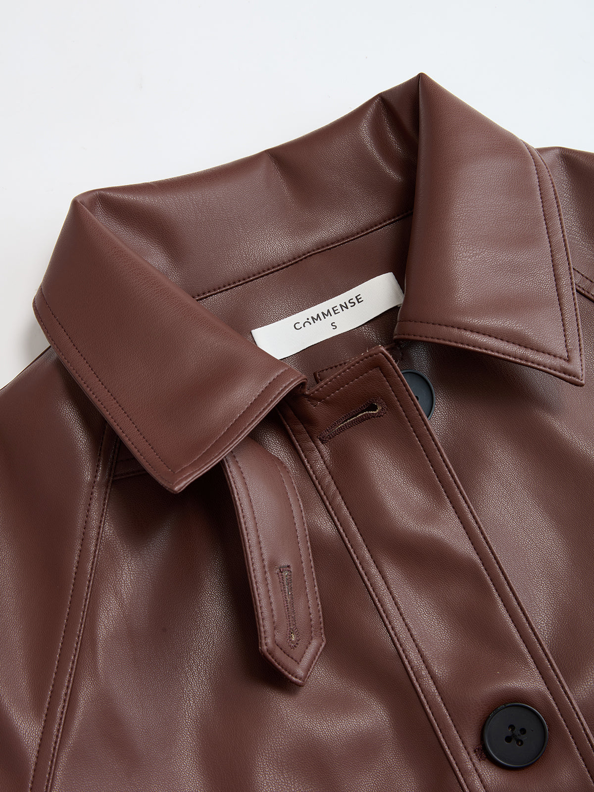 a-none,belted,brown,clothing,coll:jackets,coll:old_money,coll:outerwear,coll:tops,coll:trending,coll:vintage_fabrics,fall,faux leather,feminine,in_six_month,jackets,long sleeve,non-stretch,not_low_sales,oa251010087,outerwear,regular,regular fit,spring,warm,winter,winter hues,women