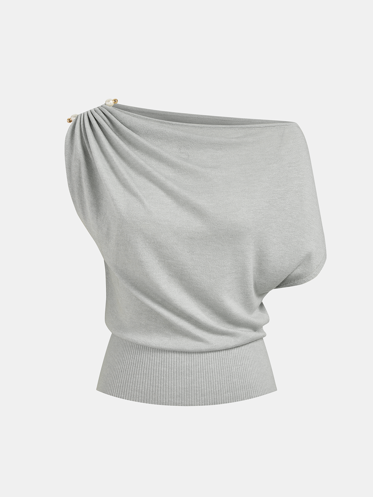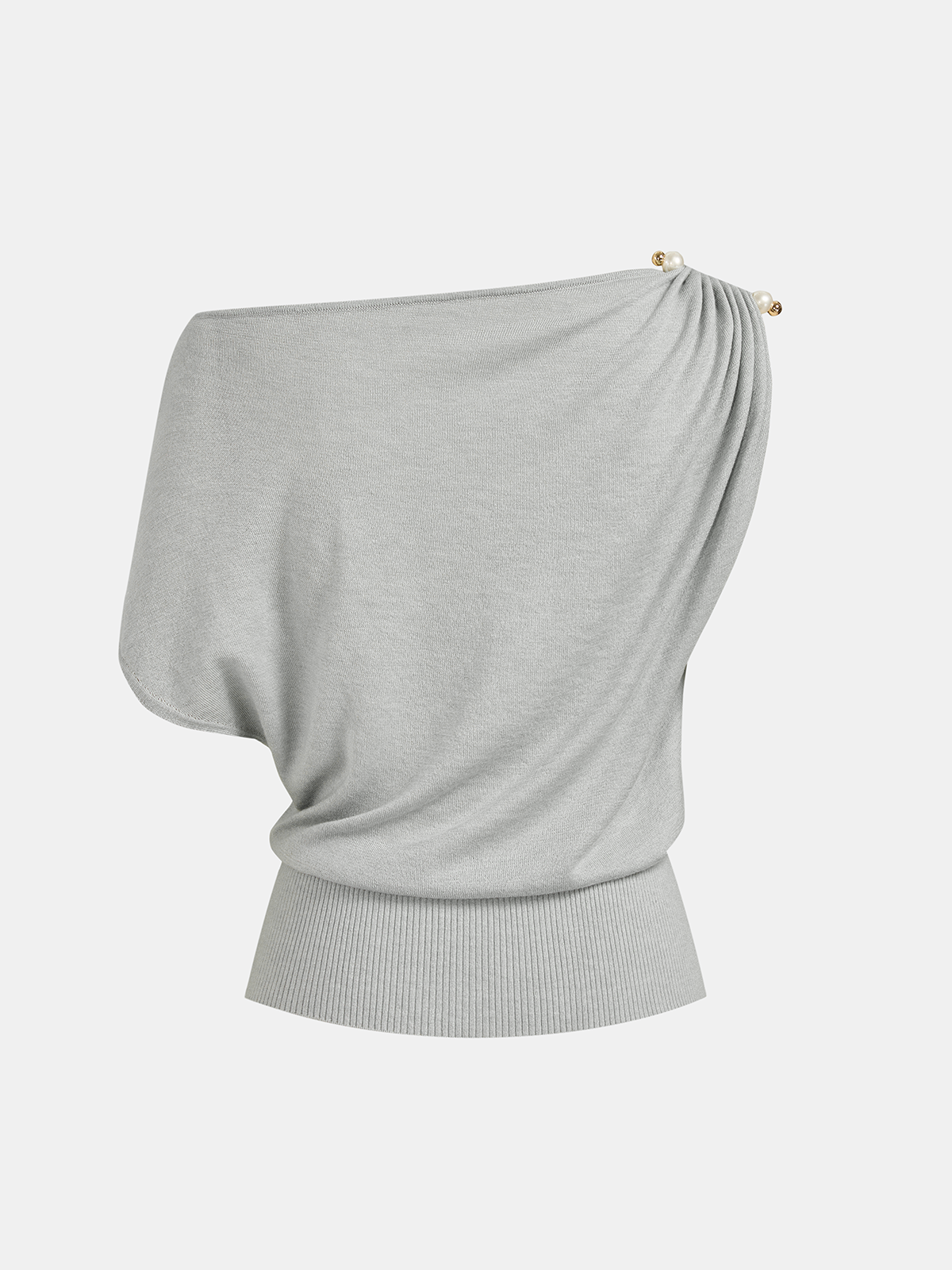asymmetric,bloused waist,casual,clothing,coll:knitwear,coll:sweater_tops,coll:sweaters_cardigans,coll:tops,coll:trending,corpcore,in_six_month,knit,knit tops,knitwear,light grey,medium stretch,minegence,not_low_sales,oa251224042,pleated,slim fit,thin,women